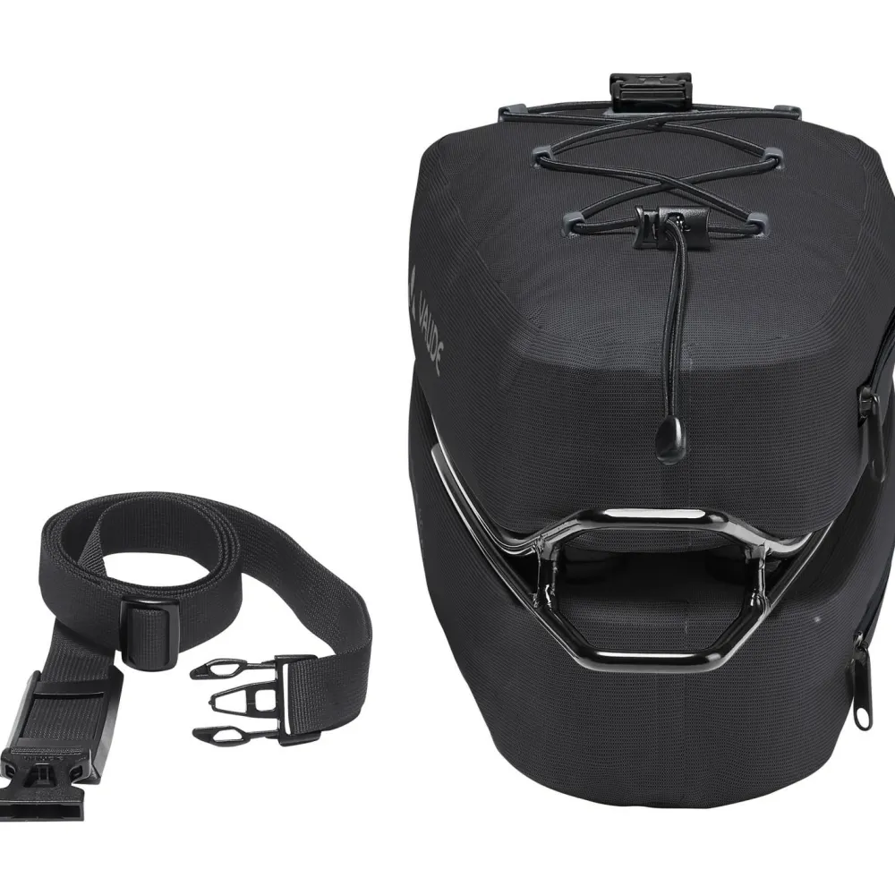 Proof steht bei Vaude für waterproof und Made in Germany! Die Fahrradsattelstützentasche bietet mit einer Beladbarkeit von bis zu 3 kg viel Platz und zusätzlichen Schutz gegen Spritzwasser und Schmutz. Es ist gelungen, den KLICKfix Contour Adapter so in die Konstruktion der Fahrradtasche einzubinden, dass zwei separate Fächer mit weit öffnenden, wasserdichten Reißverschlüssen übereinanderliegen. Dies ermöglich eine gute Organisation mit unten verstautem, schwererem Werkzeug und dem separaten Verstauen von Vesper oder Regenkleidung im oberen Fach. Abgerundet wird die Kompaktausstattung von einer auf dem Deckel befindlichen Kordelspinne, die das Verstauen von Windweste, Handschuhen oder einer Regenjacke sogar während der Fahrt möglich macht.