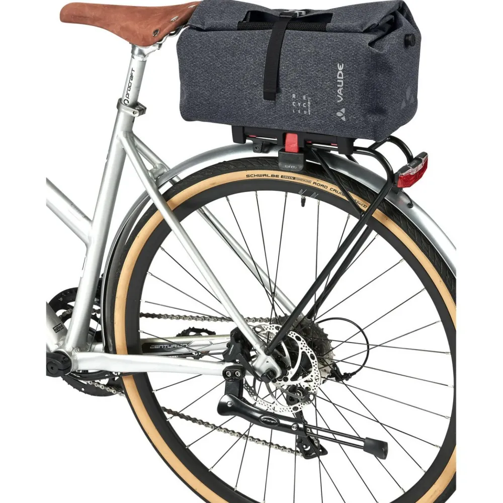 Du willst auf den Wochenmarkt, hast aber keine Lust, Deine Einkäufe in den Rucksack zu stopfen? Dann ist der ReCycle Shopper (Uniklip) 15 von Vaude genau der Richtig für Dich! Die Gepäckträgertasche bietet mit 15 Litern ausreichend Platz für Deine Einkäufe. Mit dem praktischen Rollverschluss kannst Du die Tasche je nach Inhalt auf verschiedenen Höhen verschließen. Durch das robuste und wasserdichte Außenmaterial bringst Du Deinen Inhalt sicher und trocken nach Hause.
