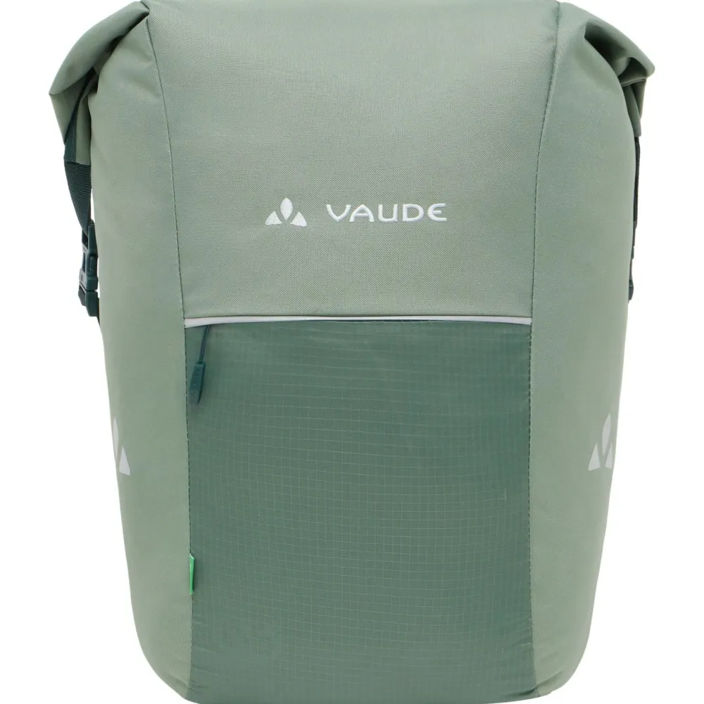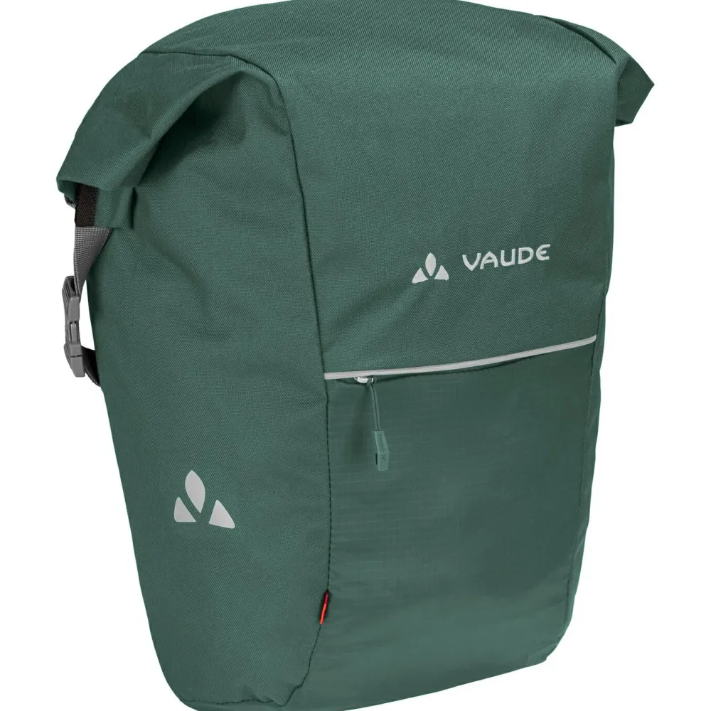Die Road Master Roll-It von Vaude ist eine erweiterbare Gepäckträgertasche mit Rolltop-Verschluss und übersichtlichem Hauptfach. Die vielseitig-flexible Fahrradtasche ist aus überwiegend recyceltem, PVC-freiem Material hergestellt und eignet sich fürs berufliche Pendeln genauso wie für die Freizeit. Ihr Soft Back 2.0 Rücken kommt ohne Kunststoffplatte aus und sorgt so für eine ressourcenschonende Herstellung. Weitere Vorteile sind das deutlich reduzierte Gewicht am Fahrrad und die Flexibilität beim Anbringen an den Gepäckträger. Letzteres geschieht mithilfe des leicht einstellbaren und abschließbaren QMR 2.0 Befestigungssystem, das auf runde Gepäckträgerrohre mit Durchmessern von 8-16 mm passt. Die maximale Beladung pro Tasche beträgt 10 Kilo.