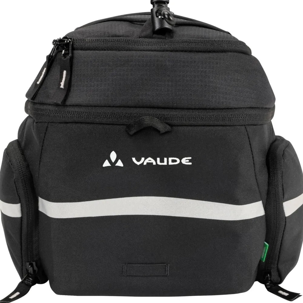 Die Silkroad Plus Gepäckträgertasche von Vaude wird oben auf dem Gepäckträger befestigt und bietet dabei 9 Liter Stauraum. Mit dem integrierten Erweiterungsbalg kann die Tasche um weitere 7 Liter auf insgesamt 16 Liter Volumen vergrößert werden. Dabei kann die Tasche mit den mitgelieferten Riemen fixiert werden – alternativ ist sie aber mit den Adapterplatten von UniKlip, MIK, Racktime und I-Rack/Carrymore kompatibel. Die Vaude Gepäckträgertasche überzeugt durch praktische Aufteilung, robustes Material und wetterfeste Ausstattung. Eine extra Regenhülle gehört ebenfalls zum Lieferumfang.