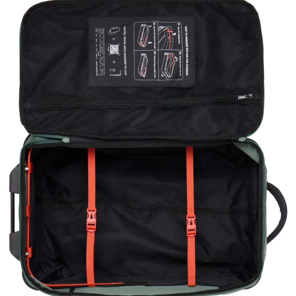 Der Takutea 35 reist mit einem ausziehbaren Teleskopgestänge und einem oberen Tragegriff, die von leichtgängigen und austauschbaren Rollen sowie Standfuß und Kantenschutz ergänzt werden. Zu den weiteren Vorteilen gehören die gut zugängliche und übersichtliche Gepäckaufteilung und die Möglichkeit, den Reißverschluss-Schieber mit einem TSA-Schloss zu sichern. Das große Hauptfach wird ergänzt durch den Netz-Zwischenboden, die Netzinnentasche, das Reißverschluss-Fach auf der Vorderseite und mehrere Befestigungsmöglichkeiten. Damit ist das Gepäck des Takutea 35 Rollenkoffers jederzeit sicher aufbewahrt!