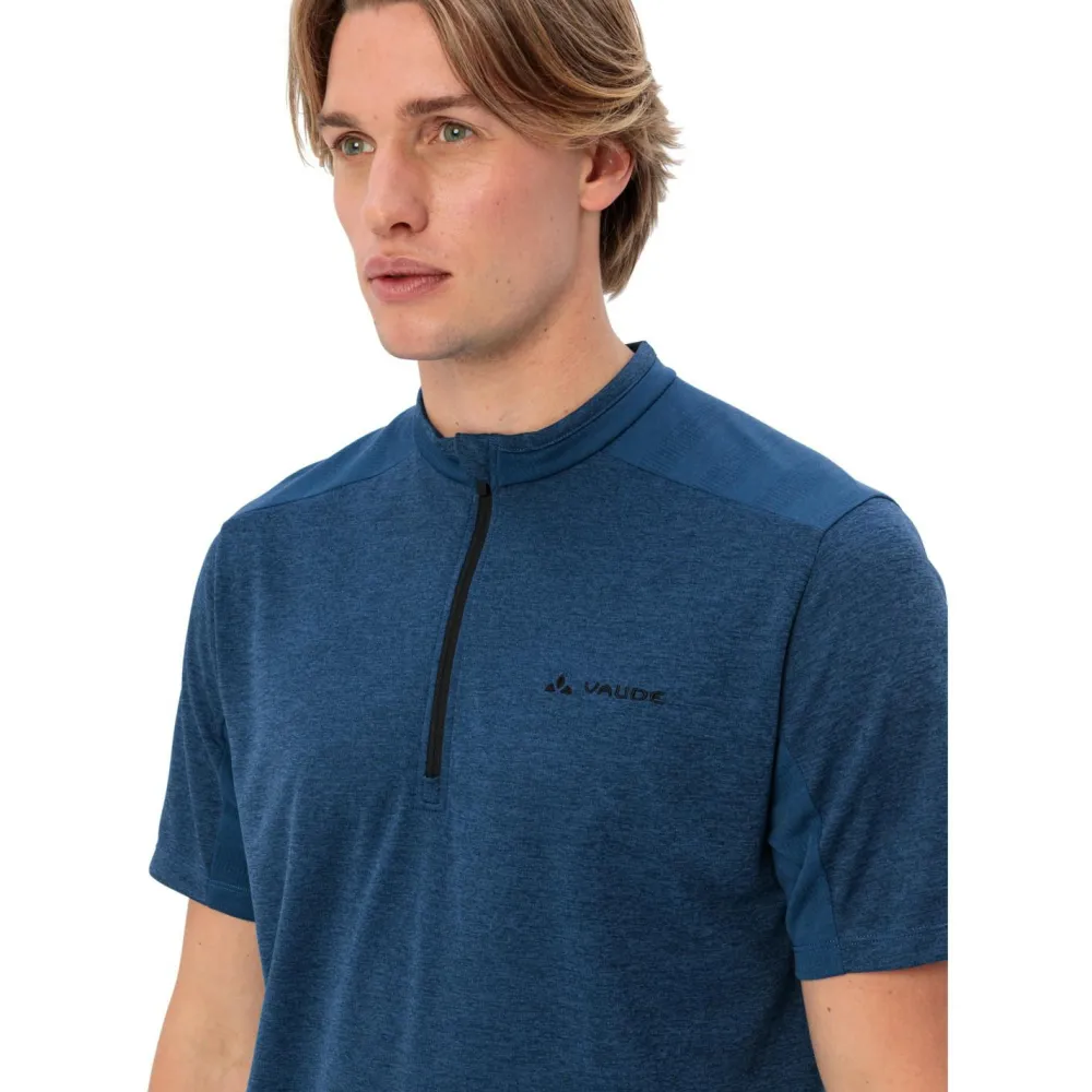Das Tamaro Half Zip Shirt IV von Vaude sorgt mit seinem leichten, atmungsaktiven und schnelltrocknenden Mischgewebe auch an langen Tagen im Sattel für Wohlgefühl. Seine Einsätze aus drirelease WOOL Mischgewebe verhindern sowohl kratzen als auch statische Aufladung. Und wenn die Tagesetappe mal schweißtreibend wird, verhindert die FreshGuard Ausrüstung die Entstehung von Gerüchen. Perfekt dazu passend bietet das Tamaro Half Zip Radtrikot eine durchdachte Ausstattung, zu der die kleine Rückentasche mit Reißverschluss und das verlängerte Rückenteil ebenso gehören wie der Stehkragen und das sportliche Colorblock Design!