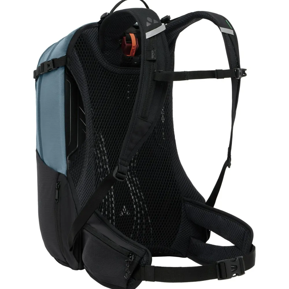 Der Trailvent 15 von Vaude ist ein kompakter und top ausgestatteter Rucksack fürs Biken und Mountainbiken. Sein robustes und wetterfestes Hauptmaterial aus recyceltem Nylon hergestellt. Für den maximalen Tragekomfort sorgen die anatomisch geformten ErgoShape Schultergurte, der ideal belüftetende Aeroflex 3D Netzrücken, der gepolsterte Hüftgurt mit Tasche und die anpassbare Rückenlänge.