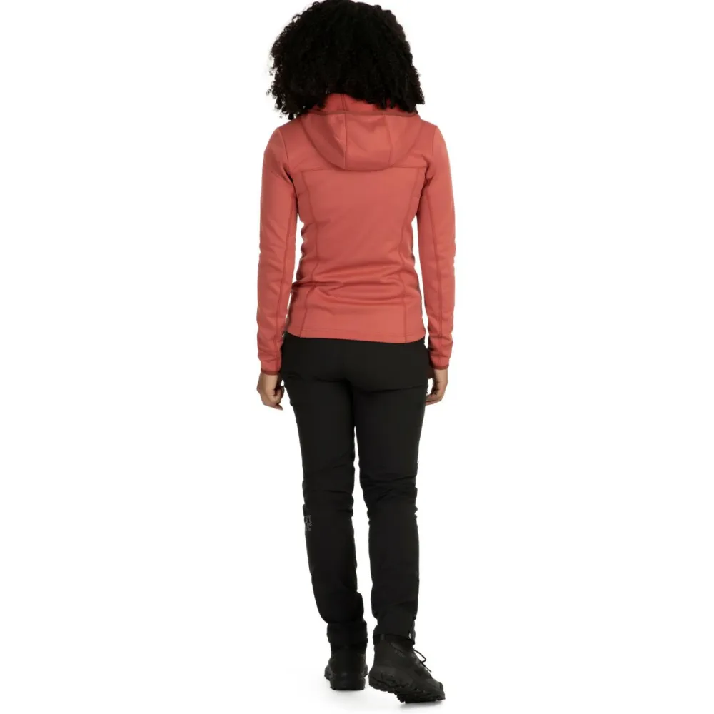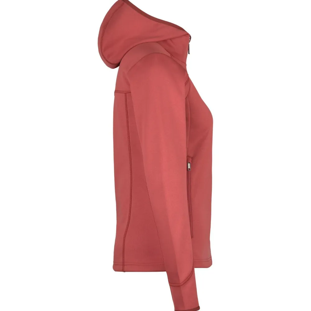 Das leicht melierte Fleece besteht aus hautfreundlichem, größtenteils recyceltem Polyester und zeichnet sich durch eine gute Elastizität aus. Auf der Innenseite ist das Material angeraut und fühlt sich angenehm weich an. Das verleiht der Fleecejacke einen hohen Tragekomfort und verbessert die Wärmeleistung zusätzlich. Der körpernah geschnittene Schnitt sorgt zudem für viel Bewegungsfreiheit und ist ideal für sportliche Aktivitäten. Kurzum: der perfekte Allrounder für alle Outdoor-Sportlerinnen.