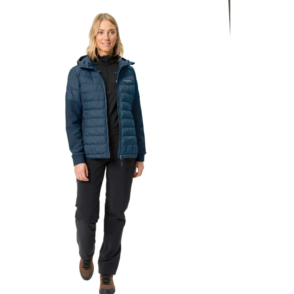 Mit der Women´s Elope Hybrid Jacket von Vaude ist das kein Problem. Denn die Jacke ist einerseits wind- und wasserabweisend und bietet so guten Schutz vor den Elementen bei ungemütlichem Wetter; andererseits ist sie auch atmungsaktiv, sodass Du auch bei etwas wärmeren Bedingungen oder schweißtreibenden Aktivitäten vergleichsweise gut vor Überhitzung geschützt bist. Ein weiterer Pluspunkt ist, dass das Gewebe erstens schnell trocknet, zweitens aber auch im nassen Zustand wärmt. Das heißt, auch wenn Du nach einem Schauer etwas nass geworden bist, bringt die Jacke trotzdem ihre Wärme- und Isolierleistung, und abgesehen davon ist sie schnell wieder trocken.