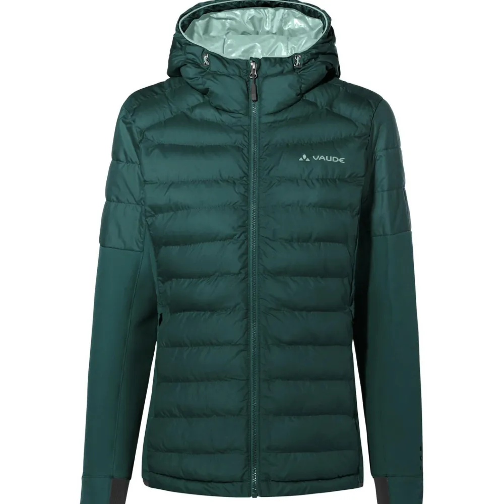 Der körpernahe, sportliche Schnitt sorgt für eine sehr gute Passform, die von den vorgeformten Ärmeln, den Stretch-Einsätzen und den teilweise elastischen Ärmelbündchen und dem Saum noch verbessert wird. Wichtige Mitnehmsel kannst Du in den beiden mit Reißverschlüssen gesicherten Fronttaschen verstauen, und ein Müsliriegel hat in der Innentasche Platz. Hergestellt ist die Women´s Elope Hybrid Jacket bis hin zur Isolierung aus recycelten Materialien, wodurch auch ihre Ökobilanz so sportlich ist wie die Passform. Vaude eben!