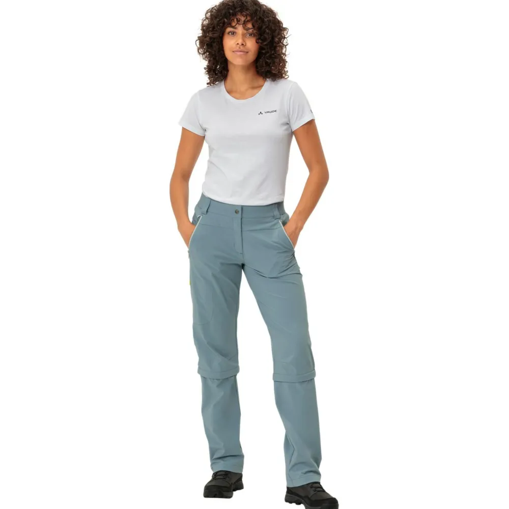 Ein Allrounder für Trekking und Wandern ist die Zip-Off-Hose Women’s Farley Stretch Capri T-Zip Pants III von Vaude! Der Materialmix bietet Atmungsaktivität, Robustheit und Tragekomfort. Dank elastischem Anteil im Material und vorgeformten Knien kannst Du Dich auch in unwegsamen Gelände gut bewegen. Die Hose lässt sich einfach zur 3/4-Hose umfunktionieren. Stauraum bieten verschließbare Taschen. Ein vielseitiger Partner!