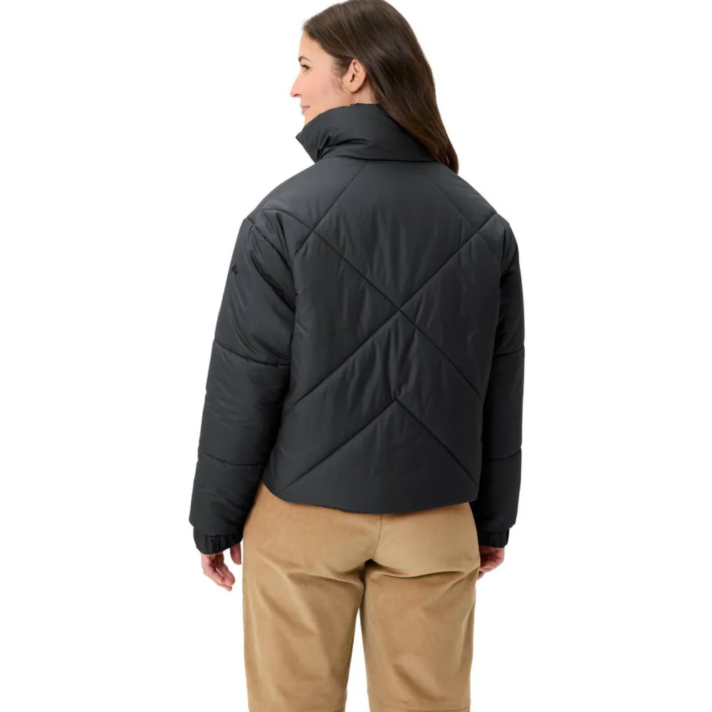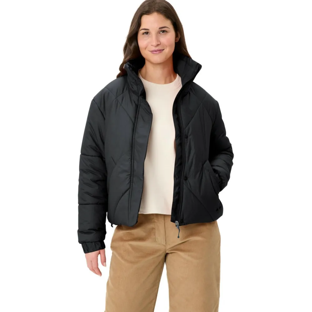 Zuverlässige Wärme und ein stilvoller Auftritt: die Women’s Najun Padded Jacket von Vaude! Die wattierte Kunstfaserjacke ist ideal für den Winter in der Stadt, macht aber auch gelegentliche Ausflüge in die Natur problemlos mit. Ihr Hauptmaterial ist aus recyceltem Polyester hergestellt und mit einer ebenfalls recycelten Primaloft-Wattierung gefüllt. Letztere sorgt für eine sehr starke Wärmeisolierung, die auch bei Feuchtigkeit funktioniert. Das Ganze ist verpackt in einen funktionellen und zugleich stylishen, gecroppten Schnitt mit einem kuschelig warmen, hohen Stehkragen.