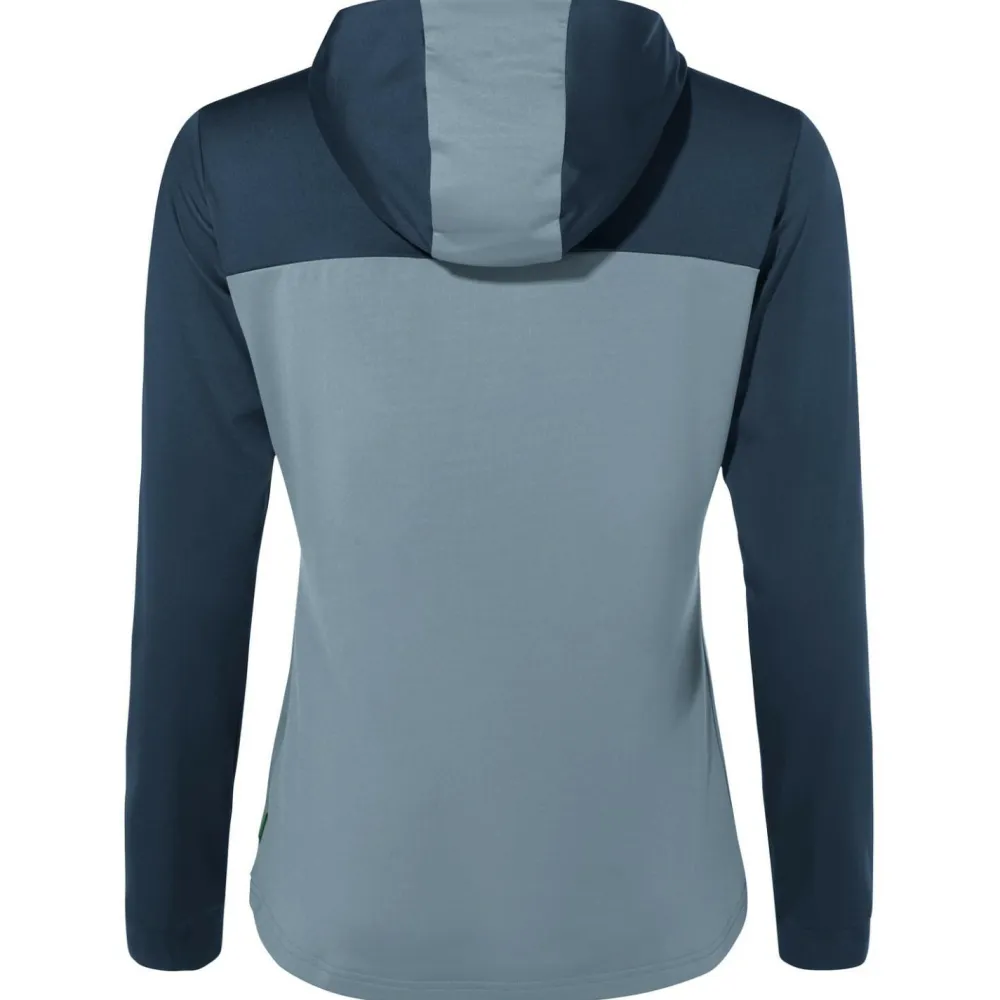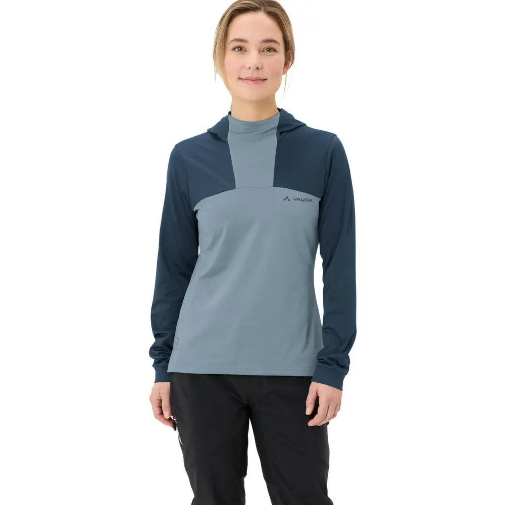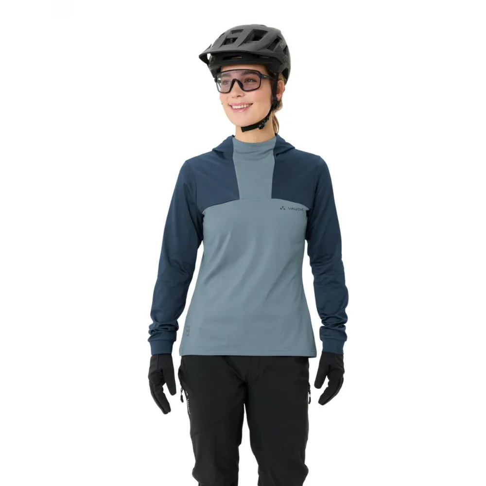 Der Women’s Qimsa Hoody von Vaude ist ein leichtes und dennoch warmes Radtrikot, das sich vor allem für MTB-Touren im Winter und in den Übergangszeiten eignet. Sein überwiegend aus recyceltem Polyester hergestellter Gewebemix ist elastisch, leitet Feuchtigkeit zuverlässig vom Körper weg und trocknet schnell. Wenn Wind aufkommt oder leichter Niederschlag aufkommt, leistet die passgenau sitzende, angeschnittene Kapuze gute Dienste. Damit ist das Qimsa Biketrikot sportlich, schnell und zuverlässig unterwegs!
