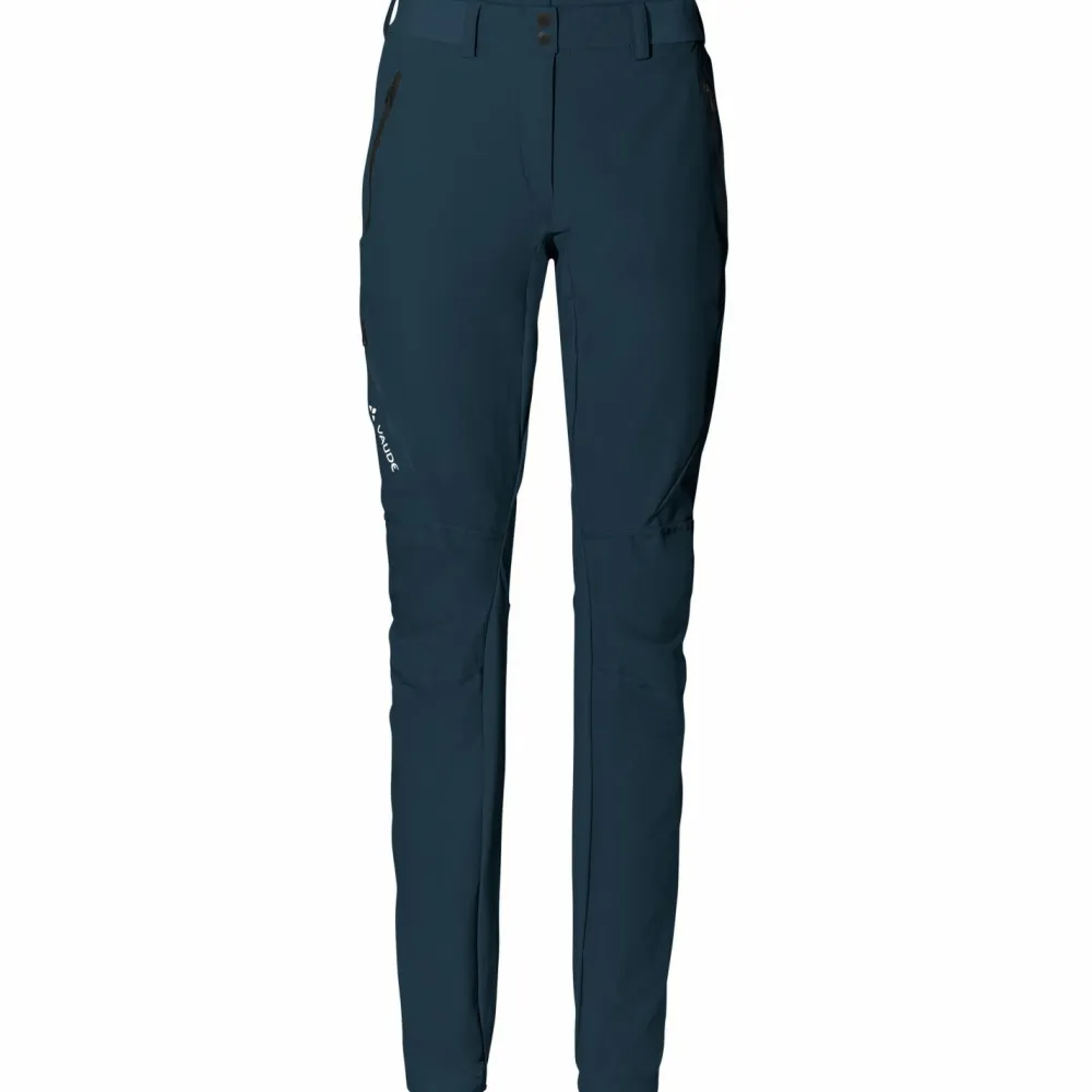 Körpernah geschnitten und extrem bewegungsfreundlich bietet sich die Women’s Scopi Pants II Trekkinghose für sportliche Bergtouren und anspruchsvolle Wanderungen an. Sie besteht aus einer leichten Materialmischung aus strapazierfähigem Polyamid und dehnbarem Elasthan. Das Gewebe gewährleistet mit einer Winddichtigkeit von etwa 80% eine super Kombination aus angenehmer Belüftung und gutem Windschutz. Zudem ist die Oberfläche der Trekkinghose mit einer wasserabweisenden Eco Finish Behandlung versehen. Die Kniepartien der Vaude Hose sind ergonomisch vorgeformt und erweiterbare Beinabschlüsse mit Reißverschluss erleichtern das An- und Ausziehen mit Wanderstiefeln oder Bergschuhen. Ein teilelastischer Bund, zwei Fronttaschen und eine zusätzliche Tasche am Oberschenkel ergänzen die funktionelle Outdoorhose.