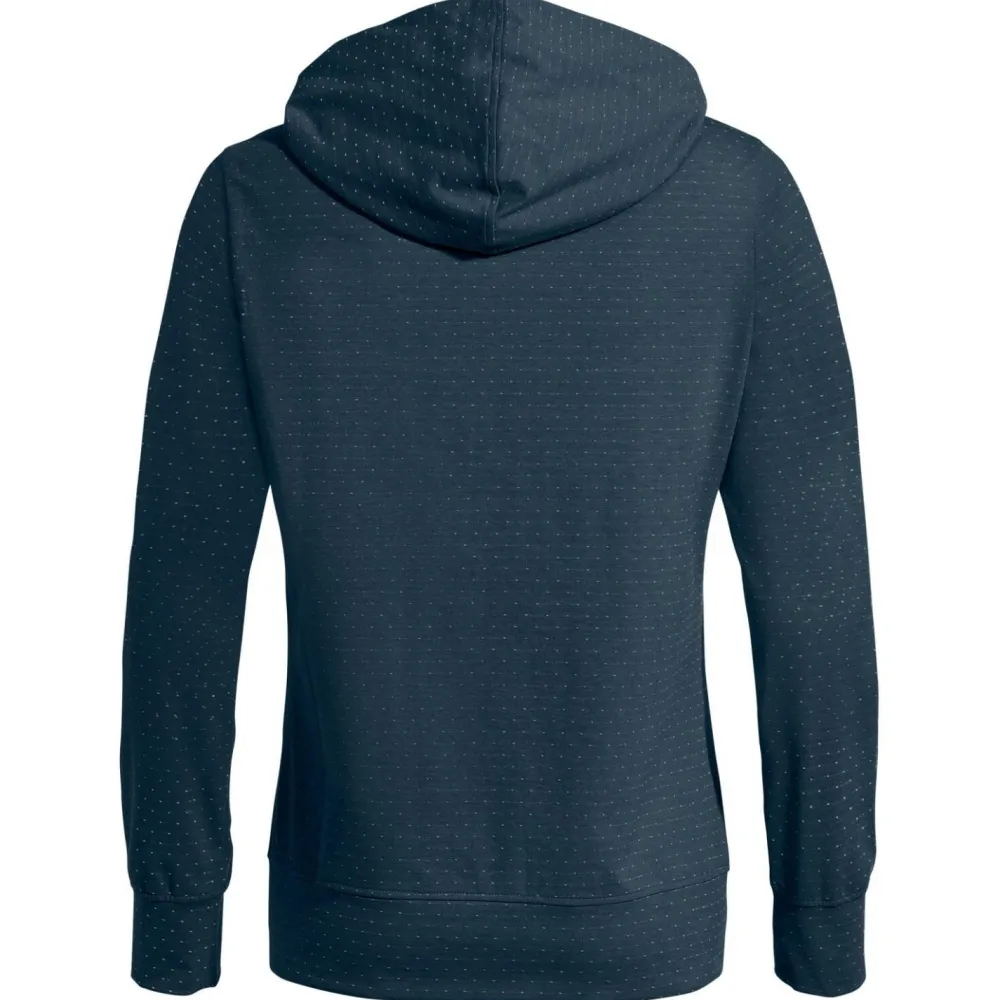 Die Ärmelbündchen sowie der Saum sind breiter geschnitten, sodass sie sauber sitzen und ein unerwünschtes Hochrutschen vermieden wird. Zusätzlichen Schutz gegen Kälte und Zugluft bietet die angeschnittene Kapuze. Ihr lässiger Schnitt und die modischen Farben machen den Women’s Tuenno Pullover von Vaude zum idealen Begleiter im Alltag und auf Reisen.