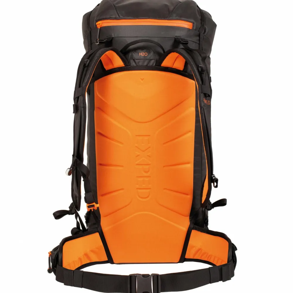 Mit dem Verglas 40 hat Exped einen robusten Wanderrucksack im Angebot, der sich ideal zum Wandern, Trekking und für alpine Hochtouren eignet.Wanderstöcke und Eispickel lassen sich durch mehrere Schlaufen bequem an der Außenseite fixieren. Am Daisy Chain System kann weitere Ausrüstung wie ein Kletterhelm angebracht werden. Das vorgeformte Rückenpolster aus weichem Schaumstoff kann herausgenommen werden, um Gewicht zu sparen. Über seitliche Kompressionsriemen lässt sich das Volumen schnell anpassen. Zwei Taschen am Hüftgurt, eine Deckeltasche und das große Hauptfach mit seitlichem Zugriff bieten viel Platz für Verpflegung und zusätzliche Bekleidung. Das wasserabweisende Außenmaterial schützt den Inhalt vor Feuchtigkeit.Der gepolsterte Boden und ein moderner Schnellzugriff auf das Innenfach machen den Exped Verglas 40 zu einem idealen Wanderrucksack für die nächste Bergtour.