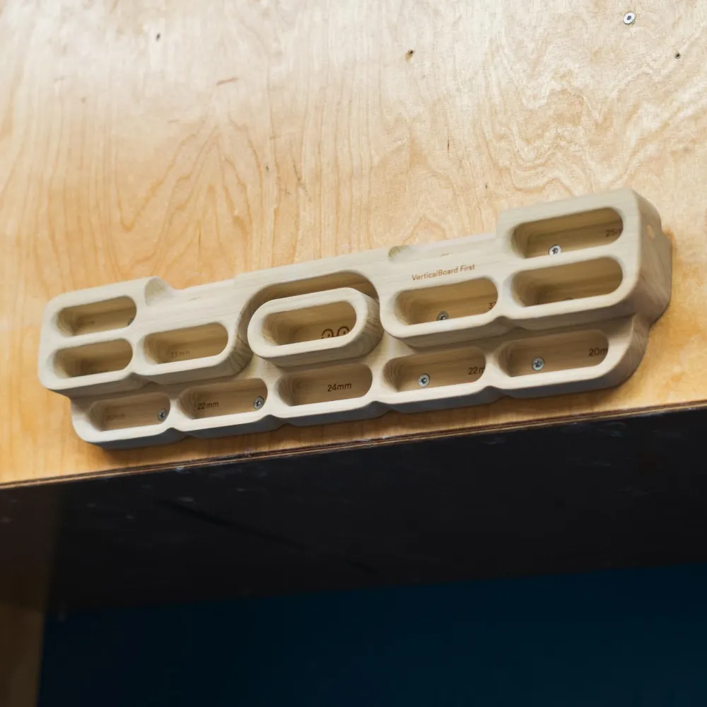 Das VerticalBoard First von YY Vertical ist ein Trainingsboard für Kletterer entwickelt, die effizient stärker werden wollen! Es verfügt über eine Vielzahl unterschiedlicher Grifftiefen, um schrittweise bis zum Ziel zu trainieren. Wenn die Schwierigkeit bei Klimmzügen abgemildert werden soll, kann ein optionales Gummiband, das Gewicht bei den Übungen herausnimmt, in die dafür vorgesehene Führung des Balkens eingehängt werden. Für den Fall, dass der Anspruch höher geschraubt werden soll, ist das Board für ein System optional erhältlicher magnetischer Keile ausgerüstet, mit denen die Grifftiefen um 10 mm reduziert werden können.
