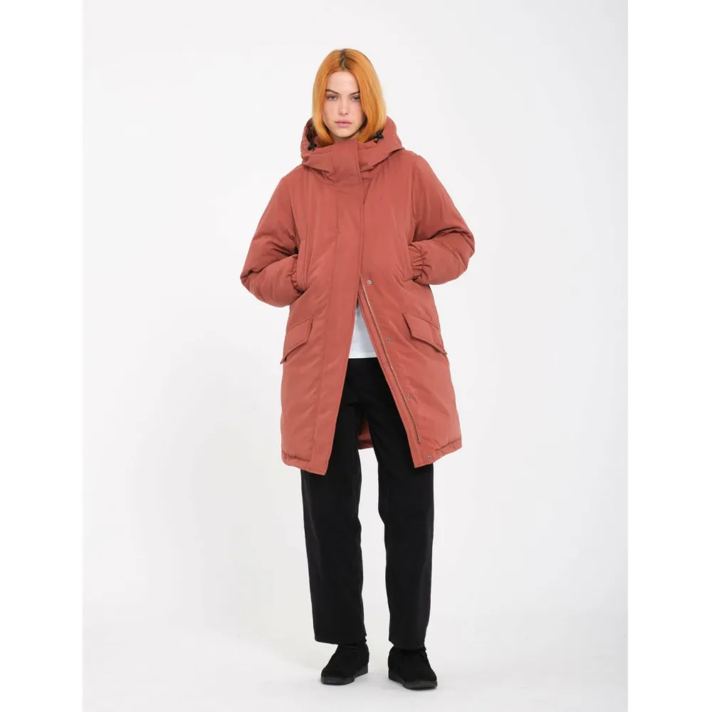 Der Women’s Sleepi Puff Up Parka von Volcom eignet sich für kalte Tage in der Freizeit. Mit dem modernen und sportlichen Look kannst Du den Mantel vielseitig kombinieren. Das gestickte Logo ist ein optischer Blickfang. Die beiden Seitentaschen ergänzen das Design der Jacke, aber bieten gleichzeitig Platz, die Hände zu wärmen oder wichtige Dinge schnell und sicher zu verstauen. Mit der Kapuze ist Dein Kopf vor Kälte geschützt. Du kannst sie dank des Kordelzugs individuell anpassen.