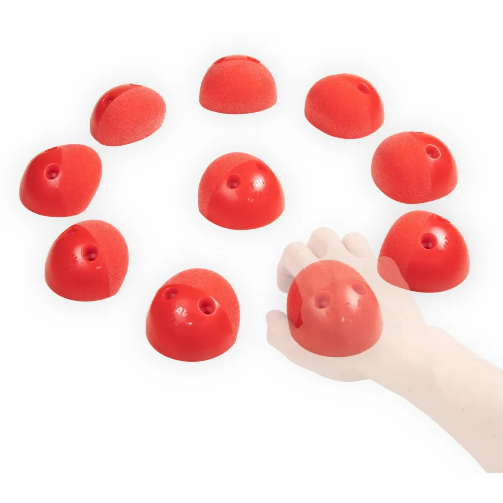 Die Dojo 7 Klettergriffe von Wataaah kommen im 10er Set in kleiner Größe. Sie bestehen aus Polyurethan, sind an der Unterseite glatt und an der Oberseite angeraut. Durch die angeraute Oberfläche gibt es auch einen guten Grip. Ein absolutes Muss für jede Kletter- und Boulderhalle. Die Dojo 7 Klettergriffe sind sowohl für die Vertikale als auch für den Überhang gut geeignet.