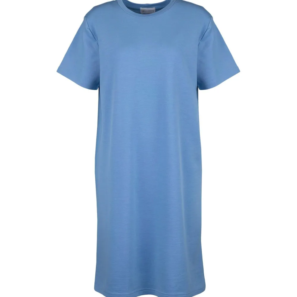 Die Merinowolle liegt weich auf der Haut und überzeugt mit geruchshemmenden und atmungsaktiven Eigenschaften. So bleibst Du lange frisch, auch wenn Du mal ins Schwitzen kommen solltest. Zudem kann der Stoff schnell trocknen und sorgt daher für ein angenehmes Tragegefühl. Zudem hat Merinowolle einen temperaturausgleichenden Effekt. Das bedeutet, dass sie bei warmen Temperaturen kühlend wirkt und bei kälteren Temperaturen wärmend ist. Der Creora-Eco-Soft-Faseranteil macht den Stoff noch weicher und glatter. So wird das Kurzarmkleid zum vielseitigen und komfortablen Begleiter!
