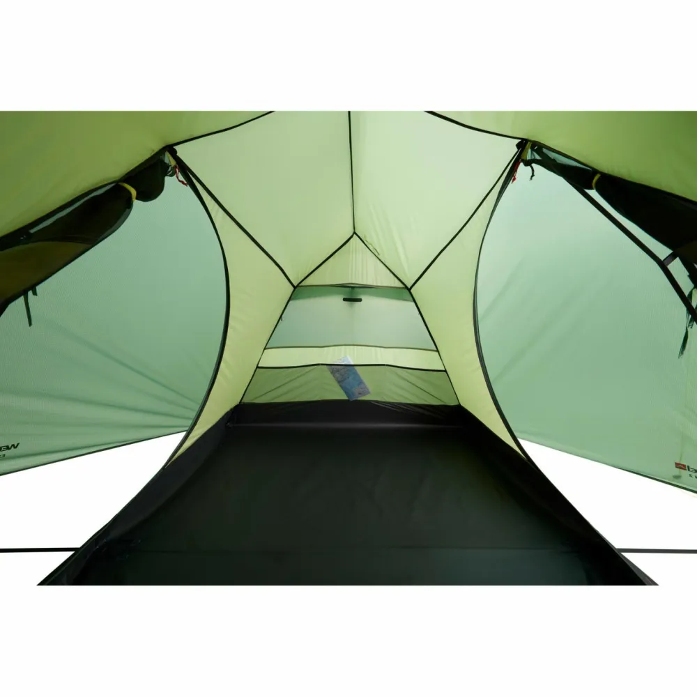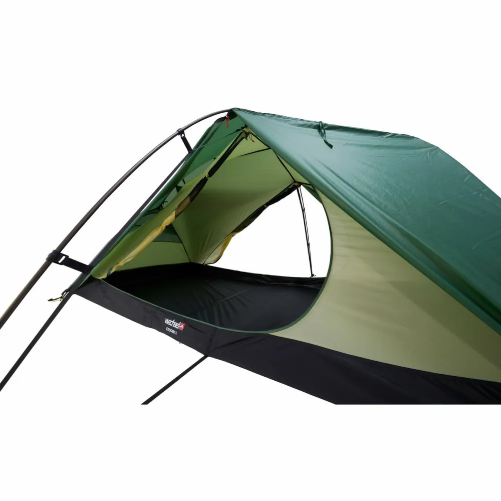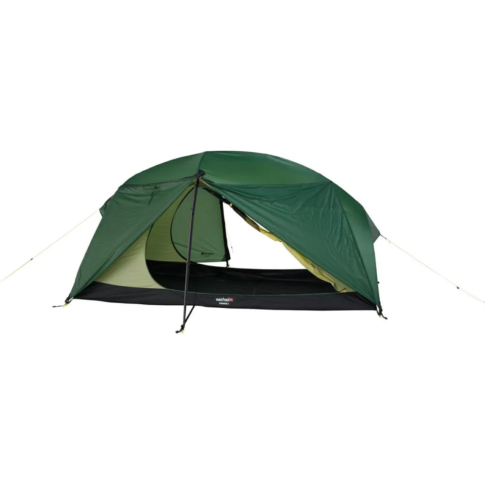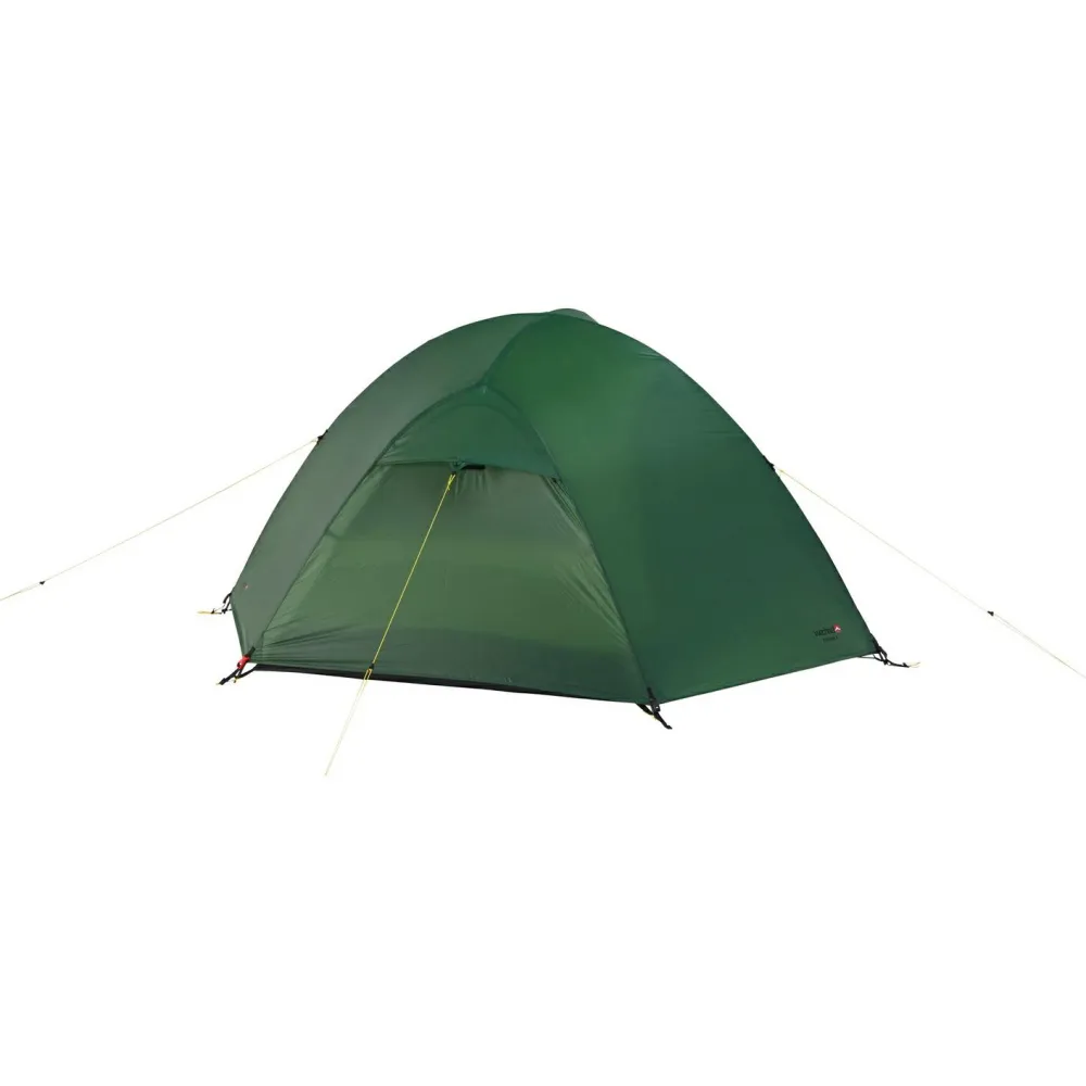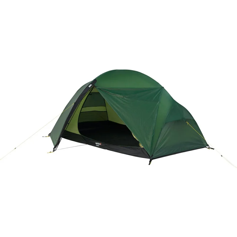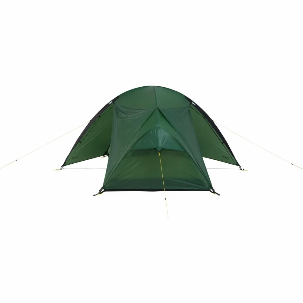Robust und leicht, das Exogen 2 Zelt für zwei Personen von Wechsel. Das gesamte Zelt besteht aus Ripstop Nylon. Das Außenzelt ist durch die beidseitige Behandlung der Oberfläche mit Silikon besonders reißfest, strapazierfähig und stark UV-Resistent. Die Nähte des Bodens wurden zusätzlich getaped. So wird die wasserabweisende Wirkung nochmals erhöht und er kommt auf eine Wassersäule von 5000 mm. Hierdurch muss man sich auch bei Starkregen keine Gedanken über durchdrückende Feuchtigkeit machen. Das Innenzelt hat ebenfalls eine wasserabweisende Wirkung, ist aber atmungsaktiv und sorgt für eine angenehme Belüftung. Um ein verwinden des Zeltes bei starkem Wind so gering wie möglich zu halten, werden die leichten Aluminiumstangen an zwei Knotenpunkten fixiert. Das Geodätzelt steht somit auch bei Wind sicher und das unangenehme Geflatter der Plane wird auf ein Minimum reduziert.Um den Aufbau zu erleichtern ist eine Steckschnalle, mit welchen das Außen und Innenzelt verbunden werden, farblich markiert. Das Errichten des Exogen 2 geht so schnell von der Hand und ein falsches Verbinden der Teile ist kaum möglich.Falls nur ein leichter Wetterschutz benötigt wird, kann auch lediglich das Außenzelt zusammen mit der Bodenplane aufgebaut werden.Für eine angenehme Belüftung sorgen die vier Mosquitogazen und zwei Belüftungsöffnungen, welche so angebracht sind, dass eine stetige Luftzirkulation besteht. Das Zelt verfügt über zwei Eingänge mit Apside. Die Reisenden haben also genügend Platz für Ihren Rucksack und Wanderschuhe und müssen nicht über den Zeltnachbarn steigen, sollten sie mal früher aufstehen wollen.