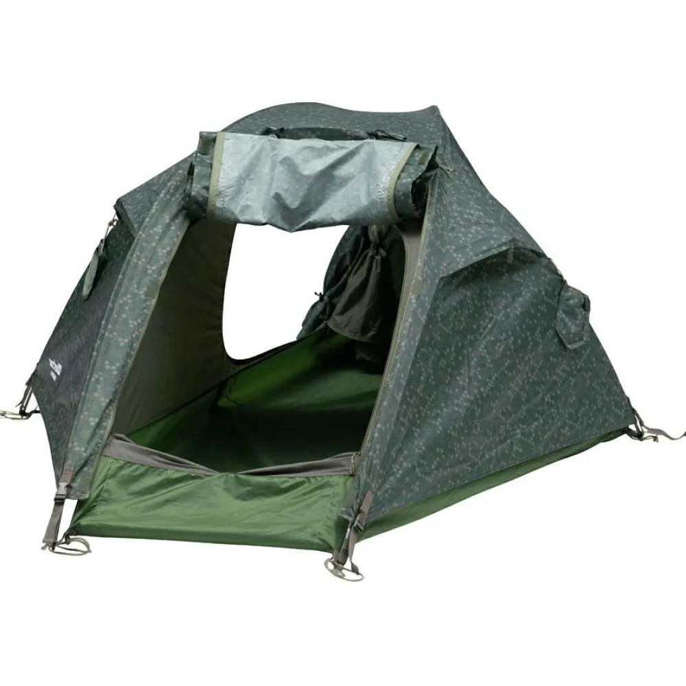 Das Pathfinder Elements von Wechsel ist ein gut getarnter Begleiter für Solo-Abenteuer in der Natur! Beim Pathfinder Elements handelt es sich um ein kompaktes Kuppelzelt für eine Person, das über ein freistehendes Design verfügt und somit auf vielen verschiedenen Böden einsetzbar ist. Das PU-beschichtete Außenzelt aus reißfestem Ripstop-Polyester bietet nicht nur optimalen Schutz vor den Elementen, sondern fügt sich dank Hexagon-Tarnmuster nahtlos in die Umgebung ein. Der PU-beschichtete Zeltboden besteht aus langlebigem Polyester und bietet mit seiner Wassersäule von 7.000 mm zuverlässigen Schutz vor eindringender Feuchtigkeit. Das leichte Aluminiumgestänge verleiht dem Zelt die nötige Stabilität und ist mit farblichen Markierungen versehen, die einen schnellen und unkomplizierten Aufbau ermöglichen.