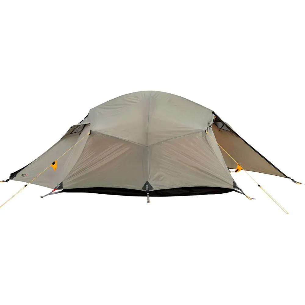 Das leichte Zelt lässt sich bequem im mitgelieferten Packsack verstauen und passt in herkömmliche Trekkingrucksäcke. Damit der Aufbau auch bei schlechtem Wetter schnell von der Hand geht, ist das Gestänge farblich markiert. Die Innentüren sind im oberen Teil mit Moskitonetzen ausgestattet und halten die Mücken aus dem Inneren fern. Das Reisezelt verfügt über beidseitige Eingänge und zwei Apsiden, in denen nicht benötigte Ausrüstung wie die dreckigen Wanderschuhe oder Kochausrüstung verstaut werden kann. Das robuste Außenzelt des 3-Personen Zeltes ist dank einer beidseitigen Silikonbeschichtung gegen die Aufnahme von Feuchtigkeit geschützt und macht Deine nächste Trekkingtour mit dem Venture 3 von Wechsel zu einer komfortablen Angelegenheit.