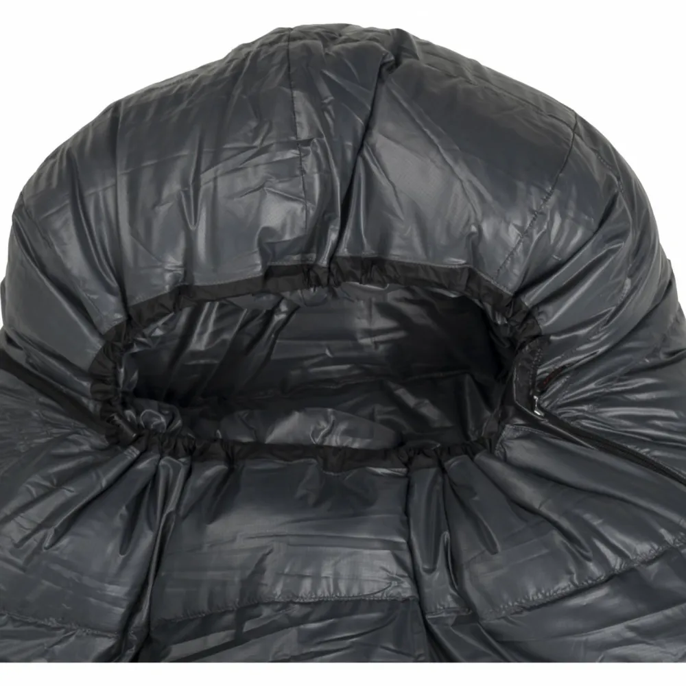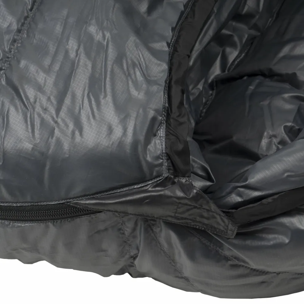 Falls es jedoch im Inneren doch einmal zu warm werden sollte und die atmungsaktive Wirkung der Daunen nicht mehr ausreicht, hat der Schlafsack noch ein Ass im Ärmel. Er verfügt nämlich über einen doppelläufigen Reißverschluss. Dieser kann zusätzlich als Belüftungssystem eingesetzt werden. Der Clou an der Sache: Im unteren Bereich können die Füße an die kühlende Luft gehalten werden, während der restliche Schlafsack immer noch verschlossen ist.