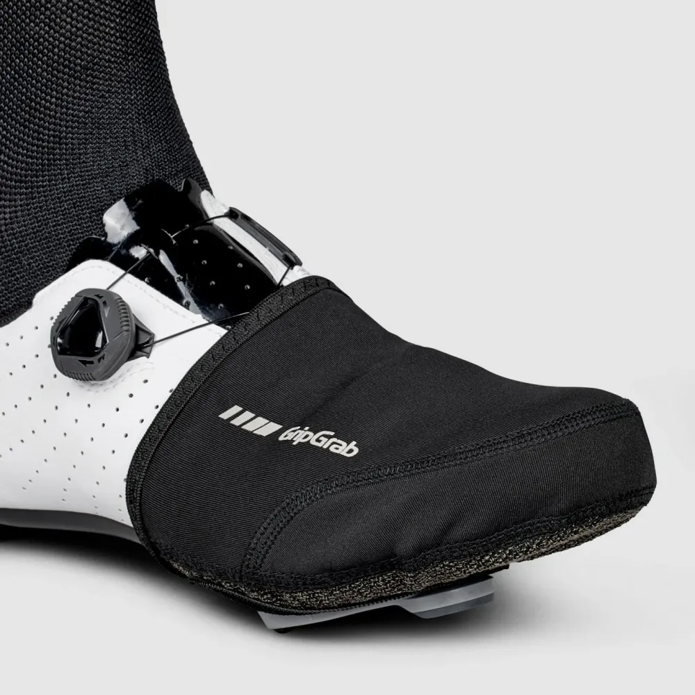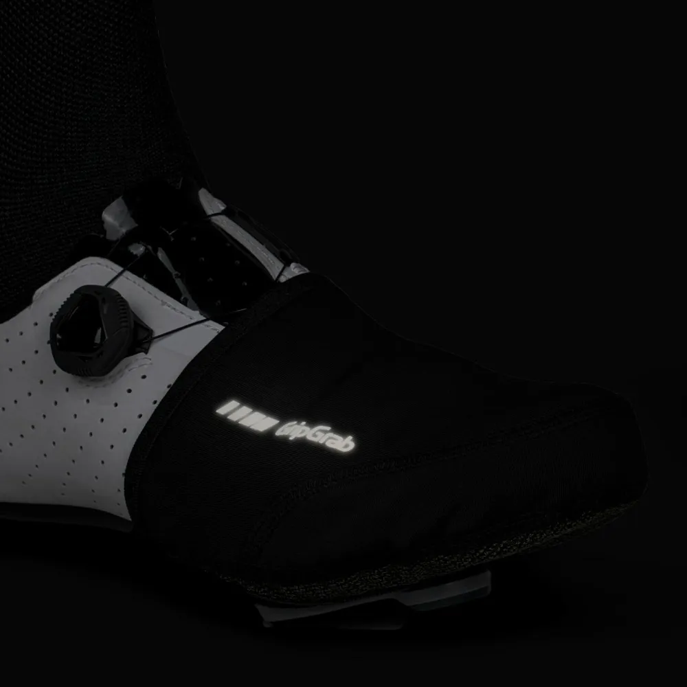 Die Windproof Road Toe Covers Überschuhe von GripGrab umschließen die vordere Schuhhälfte und bieten Wind- und Regenschutz im Zehenbereich. Sie lassen sich besonders leicht an- und ausziehen, sind strapazierfähig und eignen sich besonders gut bei nasser Fahrbahn oder leichtem Regen. Auch bei kühler Luft überzeugen sie durch ihren tollen Windschutz. Die Überschuhe verfügen über reflektierende Details für verbesserte Sichtbarkeit.
