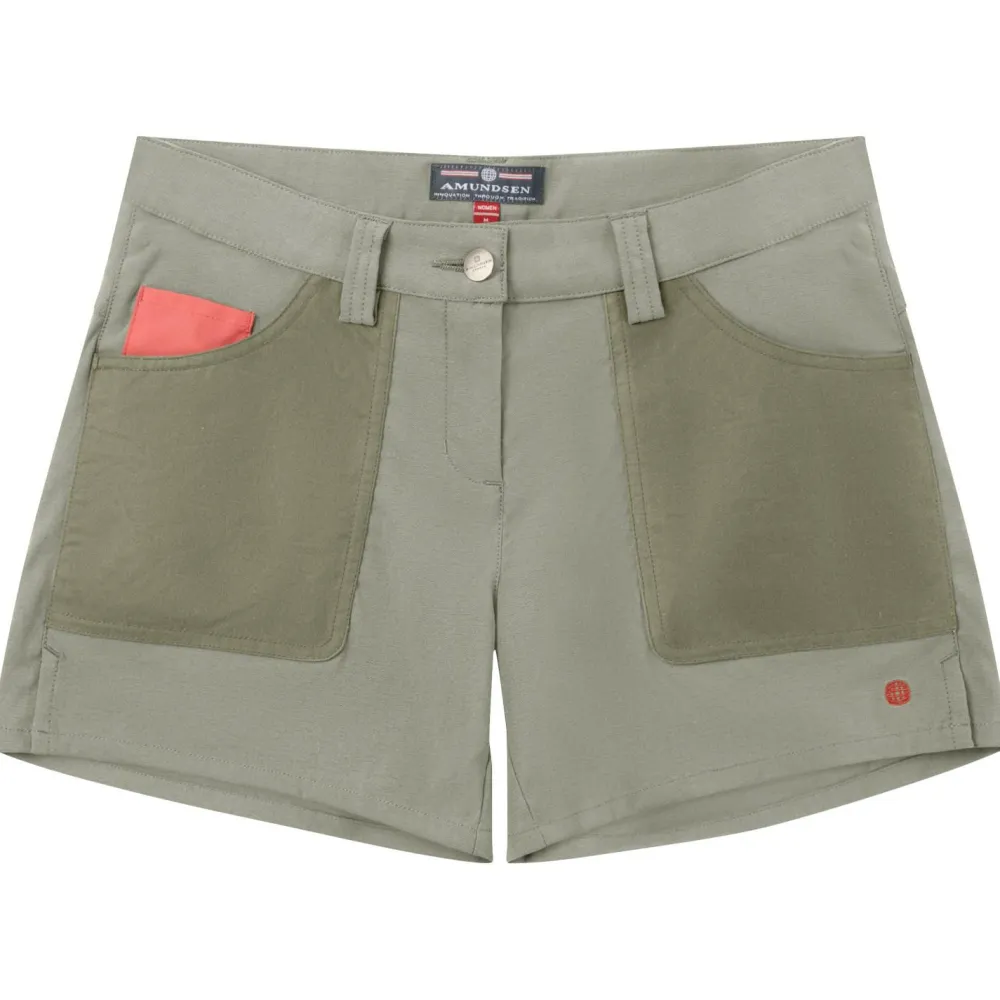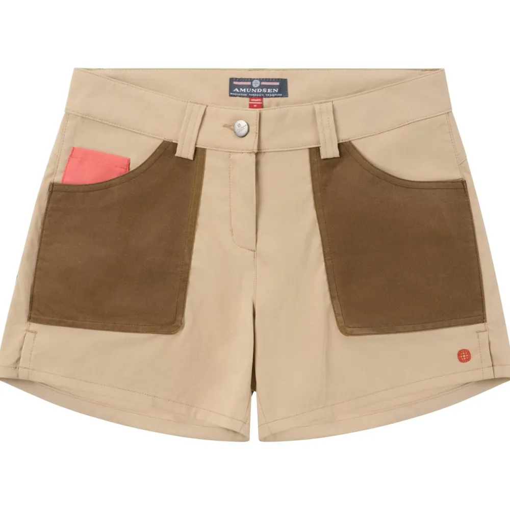 Die stilvolle Women’s 5“ Field Shorts von Amundsen Sports verleiht Dir eine lässige Optik beim Wandern, oder in der Freizeit. Die hochwertigen und robusten Fasern sind für den anspruchsvollen Einsatz im Freien gemacht. Eine Wachs-Imprägnierung verhindert das Eindringen von Wasser, wenn es regnen sollte. Kleine wichtige Gegenstände, wie Smartphone, Geldbeutel und Co lassen sich sicher in den geräumigen Taschen der Hose verstauen und sind unterwegs jederzeit griffbereit.