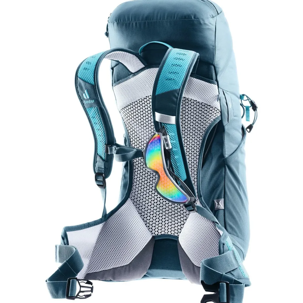 Du suchst einen leichten und bequemen Rucksack für Tagesausflüge in der Natur? Der Women’s AC Lite 22 SL von deuter ist dafür ein hervorragender Begleiter. Dir passen die meisten Wanderrucksäcke nicht so gut, weil Du eher schmal gebaut bist? Mit der SL-Collection geht deuter auf die Bedürfnisse und Proportionen von Menschen mit kürzerem Rücken und schmaleren Schultern ein.Das geringe Gewicht wird über ergonomisch geformten, gepolsterten Hüftgurt, den elastischen Federstahlrahmen und den höhenverstellbaren Brustgurt gut verteilt. Durch das deuter-Aircomfort Tragesystem mit dem Netzeinsatz am Rückenteil ist Dein Rücken gut belüftet und der Rucksack fühlt sich noch leichter an.Trotz seiner Leichtigkeit bietet der Women’s AC Lite 22 SL mit seinen vielfältigen Fächern Platz für die Dinge, die Du auf einer Tagestour brauchst.