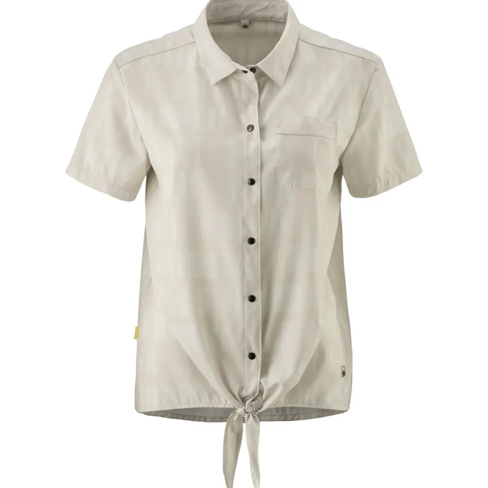 Durch das Binde-Element kannst Du die Bluse in der Weite regulieren und so die Passform individuell anpassen. Die Brusttasche bietet praktischen Stauraum für kleine Gegenstände wie Schlüssel oder Energieriegel, sodass Du alles Wichtige immer griffbereit hast.