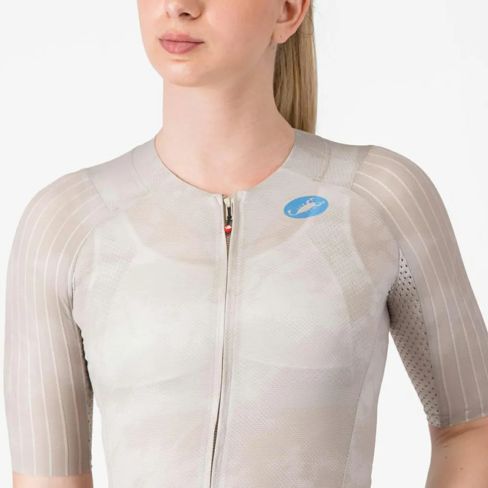 Das Women’s Aero Race 8S Jersey von Castelli wurde entwickelt, um Dir auf dem Rad entscheidende Vorteile zu verschaffen. Dank CFD-basierter Stoffplatzierung und Nahtkonstruktion reduziert das Trikot den Luftwiderstand bei Rennspeed – mit bis zu 6 % Einsparung im CdA. Perfekt für alle, die jede Sekunde zählen.