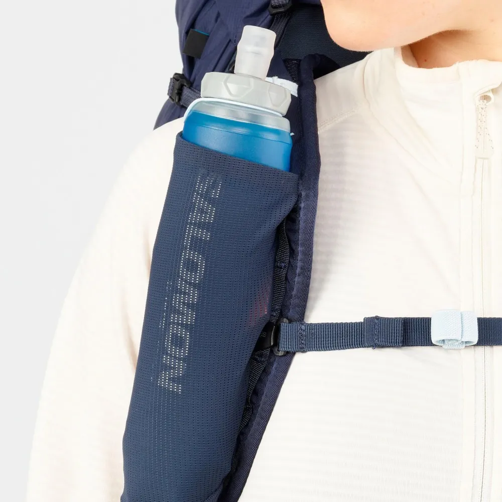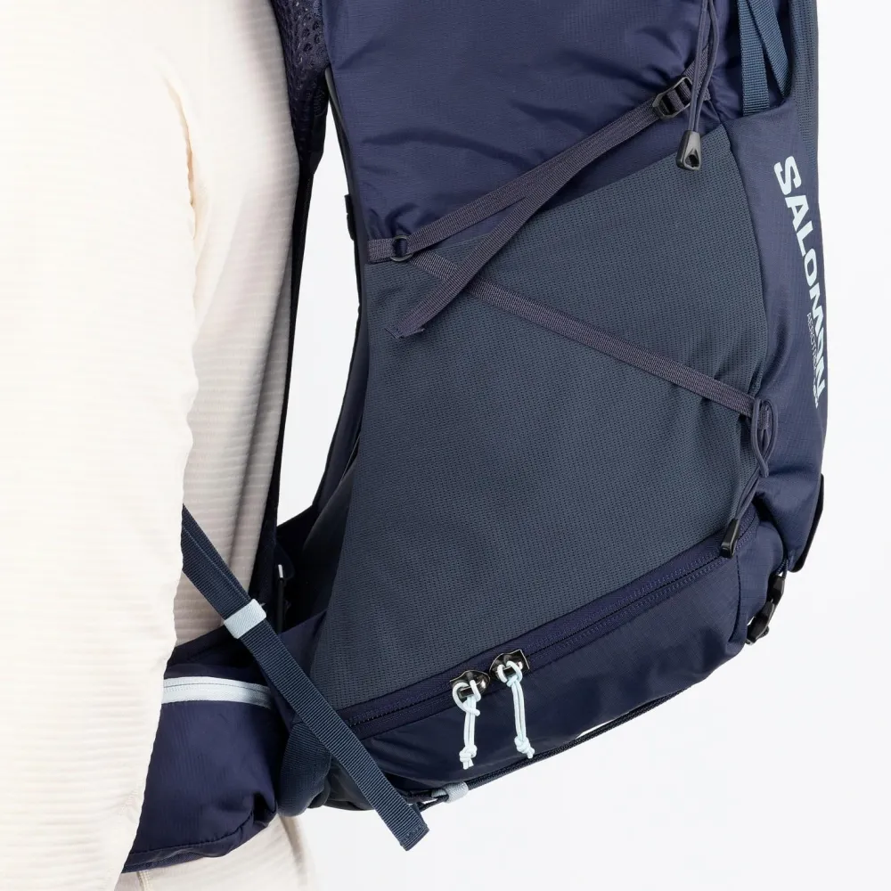 Wenn das Wetter umschlägt, kannst Du Dich auf die robuste Verarbeitung verlassen: Dank DWR-Imprägnierung perlt Wasser einfach ab und schützt Deine Ausrüstung zuverlässig vor Feuchtigkeit. Der Zugriff ins Hauptfach erfolgt als Toploader – so packst oder entnimmst Du Deine Sachen auch bei Regen schnell und unkompliziert. Hochwertige Materialien und die bewährte Qualität von Salomon sorgen dafür, dass Dir dieser Wanderrucksack viele Touren lang ein treuer Begleiter bleibt.