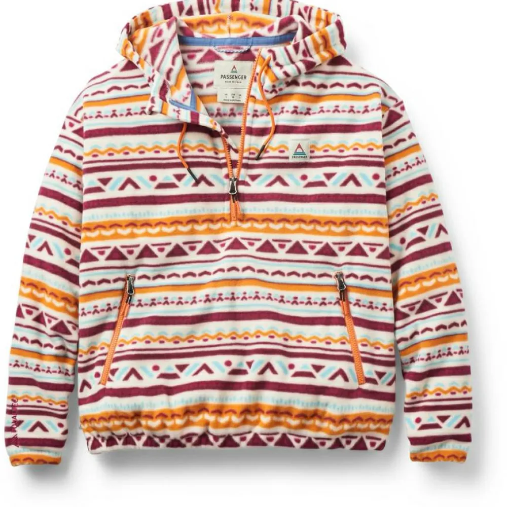 Der Women’s Ayla Micro Polartec Hooded Fleece von Passenger eignet sich für aktive Ausflüge in die Natur. Er ist atmungsaktiv und schnelltrocknend. Der Fleecepullover wurde aus 100 % recyceltem Polyester hergestellt. Die Seitentaschen mit Reißverschluss eignen sich, um Dinge schnell und unkompliziert zu verstauen. Das moderne Muster fällt schon von Weitem ins Auge und zieht damit alle Blicke auf sich. Du kannst den Fleecepullover vielseitig kombinieren.