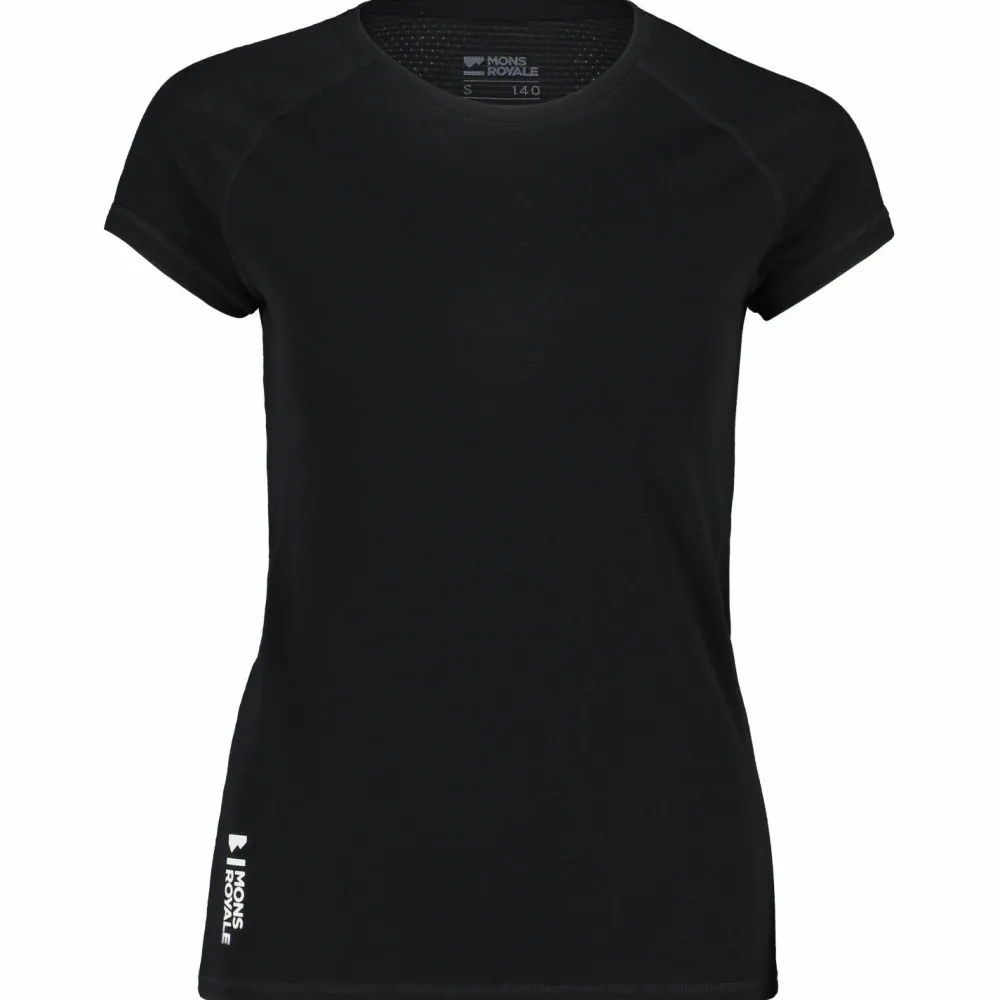 Sportliches Shirt aus Merinowolle und Nylon – das Women’s Bella Tech Tee von Mons Royale ist einfach eine gute Wahl für jedes Training. Dank der Kombination aus natürlichen Merinofasern und funktionalen Nylonfasern bietet das Shirt hervorragende Eigenschaften. Dank der Merinowolle bleibt der Körper bestens temperiert, Gerüche werden zuverlässig reduziert und das Shirt trägt sich angenehm auf der Haut. Die Kunstfasern sorgen für Strapazierfähigkeit und leiten Feuchtigkeit schnell nach außen ab. Der verlängerte Saum am Rücken ist perfekt für bewegungsintensive Sportarten.