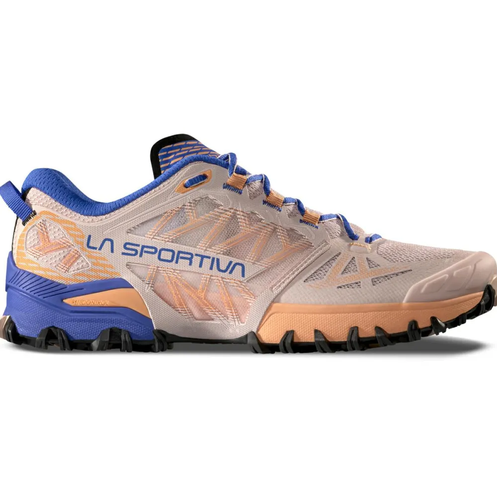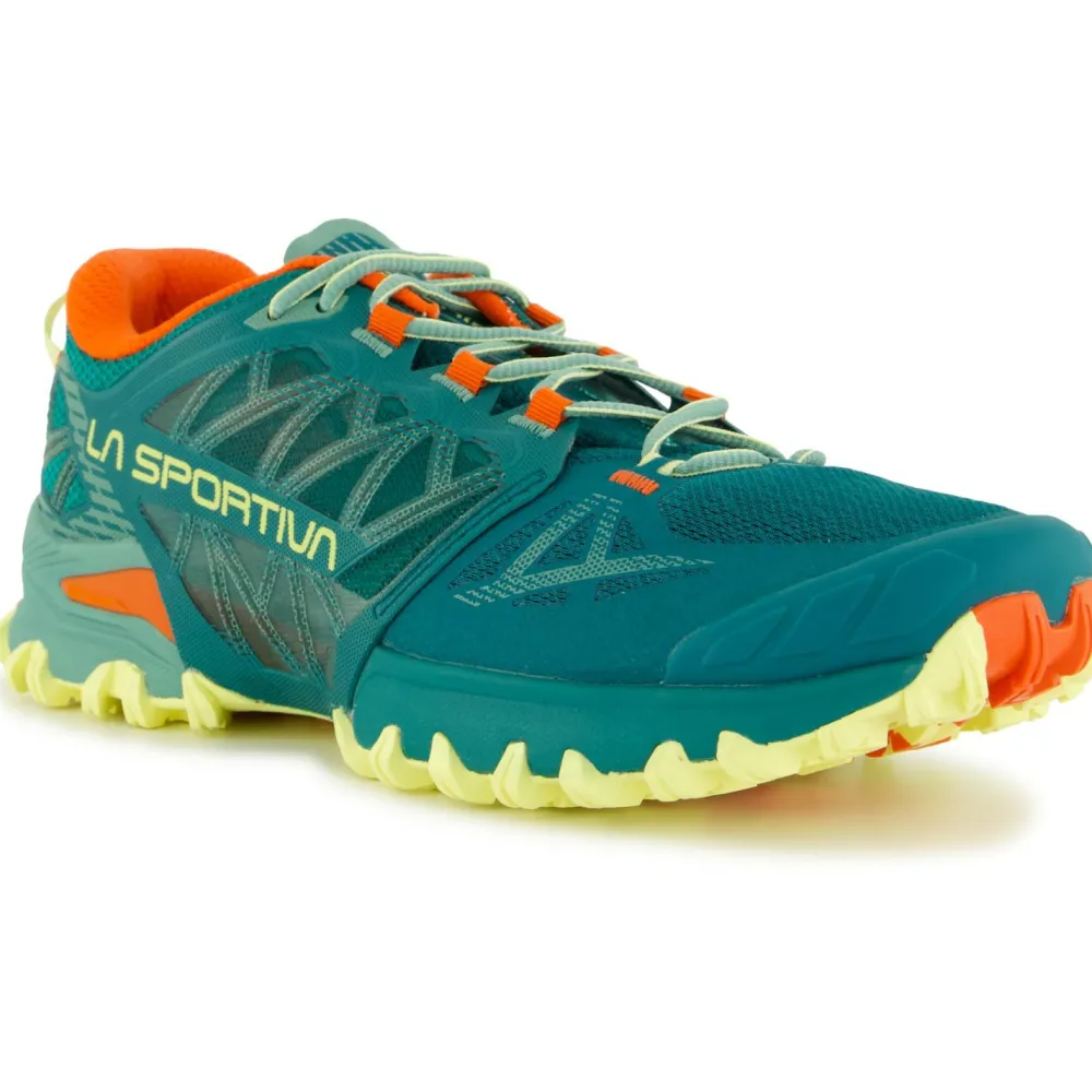 Wenn Du nach Damen Trailrunningschuhen suchst, die ein hohes Maß an Stabilität in jedem Gelände bieten, dann sind die Women’s Bushido lll von La Sportiva genau das Richtige für Dich! Das verstärkte Obermaterial aus atmungsaktivem Mesh sorgt für guten Halt in den Trailrunningschuhen und schützt Deine Füße gleichzeitig vor Steinen, Wurzeln und Co. Die seitlichen Paneele ermöglichen dabei eine starke Ventilation für Deine Füße.