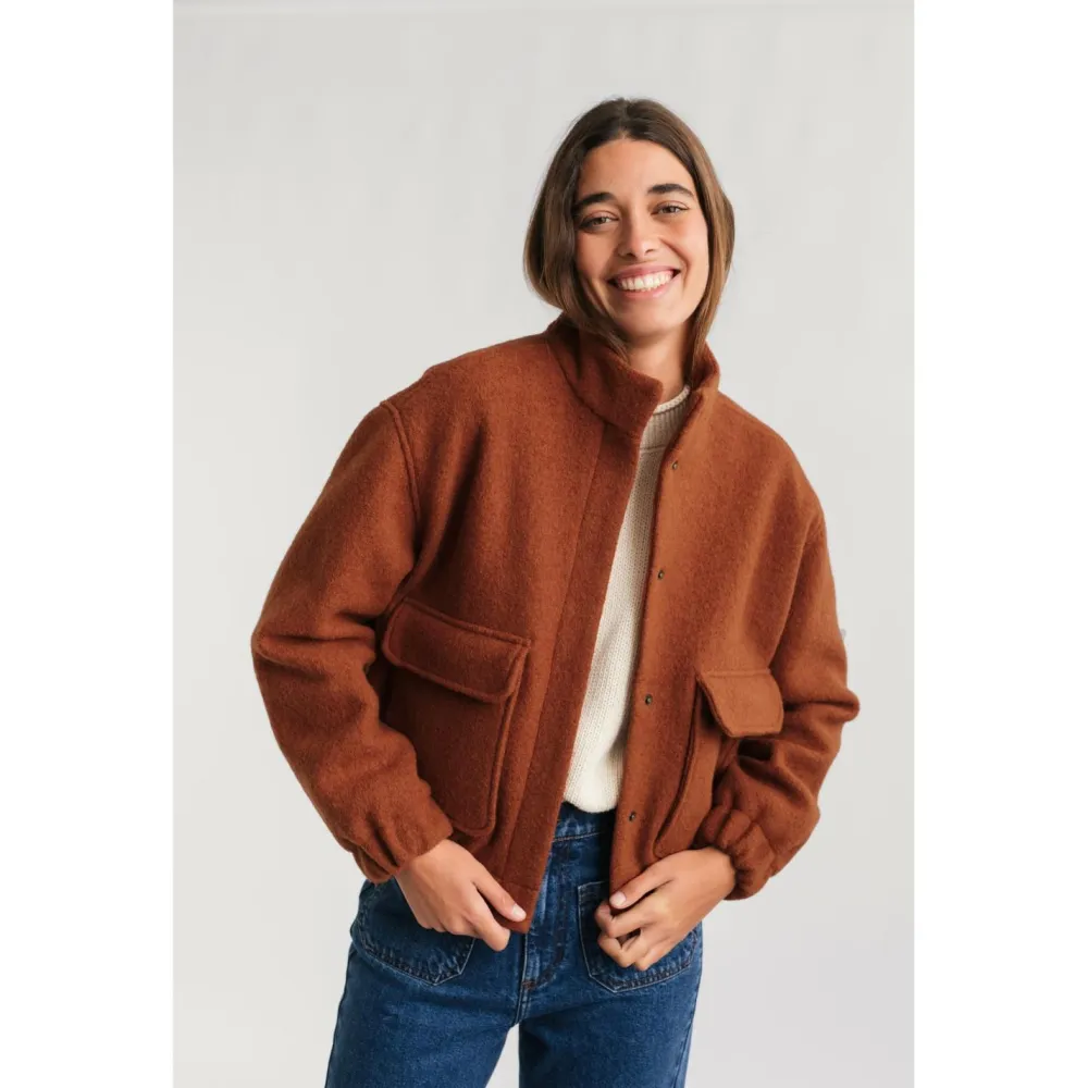 Die Women’s Bushmill Wolljacke von TwoThirds ergänzt Dein Alltagsoutfit um eine funktionale, aber stylishe Jacke. Mit ihrem lockeren, leicht gecroppten Schnitt trifft sie den Zahn der Zeit. Damit trotz des Schnitts keine Kälte eindringen kann, ist sie am Saum und an den Ärmelbündchen mit breiten, elastischen Abschlüssen versehen. Der kleine Stehkragen schützt Deine empfindliche Hals- und Nackenregion vor Kälte und Zugluft.