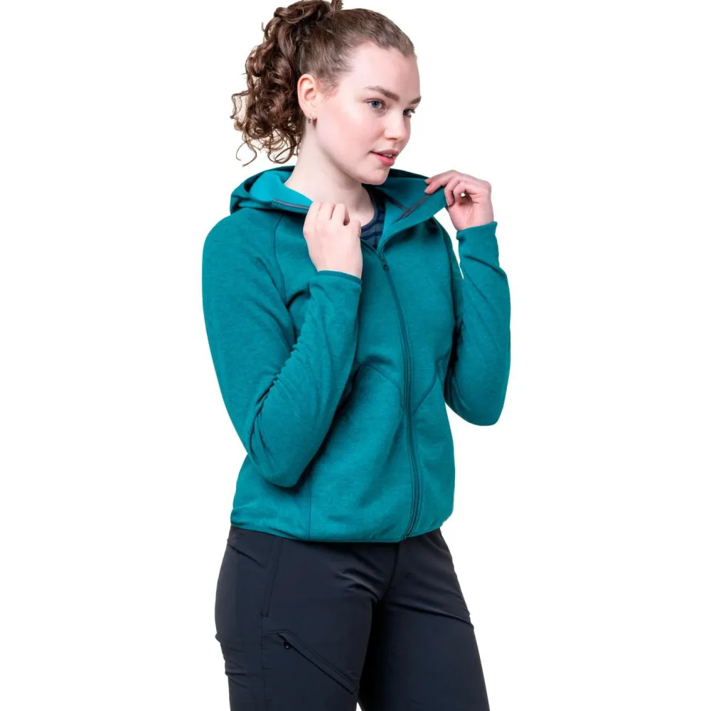 Die elastische Kapuze der Mountain Equipment Women’s Calico Hooded Jacket passt sich beim Klettern an den Kopf an und engt Dich nicht ein. Das atmungsaktive Delta Gewebe der Fleecejacke sorgt beim Bergsport für einen raschen Abtransport von Feuchtigkeit. Das weiche Fleece-Material liegt angenehm weich auf der Haut und sorgt auf jeder Bergtour für hohen Tragekomfort. Elastische Abschlüsse an den Ärmeln sowie am Saum machen die Women’s Calico Hooded Jacket von Mountain Equipment zu einer komfortablen Fleecejacke für Wanderungen, Hochtouren und zum Trekking.