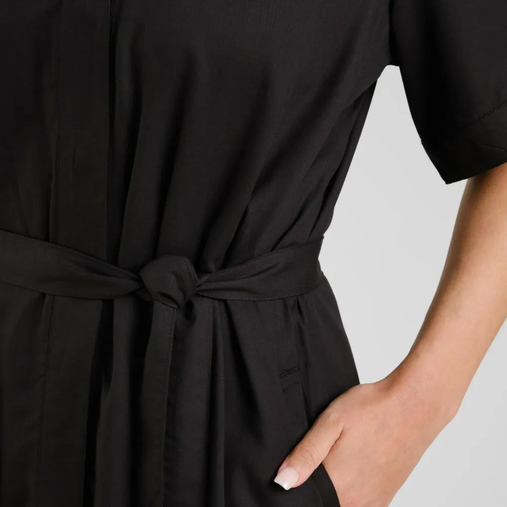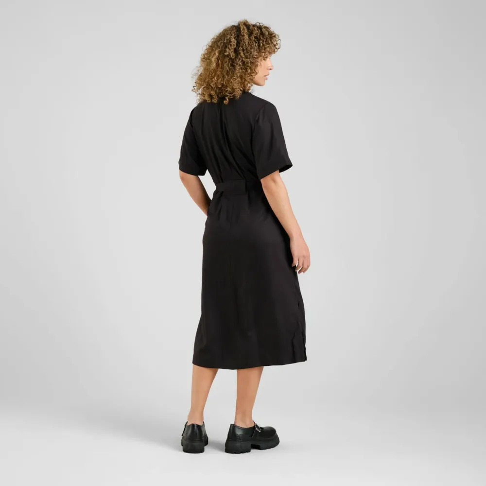 Das fließende, mittellange Women’s Dress Kallvik Kleid von Dedicated ist der ideale Sommerbegleiter!Mit seinem V-Ausschnitt und dem schicken Gürtel in der Taille zaubert es eine tolle Silhouette. Die versteckten Corozo-Knöpfe und die praktischen Eingrifftaschen an den Seiten bringen nicht nur Style, sondern auch Funktionalität. Die großen Gürtelschlaufen auf der Rückseite sorgen für einen extra lässigen Look. Hergestellt aus 100 % LENZING™ ECOVERO™ ist es nicht nur bequem, sondern auch umweltfreundlich. Ein tolles Teilchen für sonnige Tage!