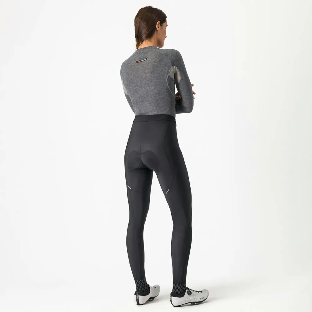 Die Espresso Tight von Castelli ist die ideale Wahl für Deine Wintertouren! Sie kombiniert warmes, weiches Thermoflex-Gewebe mit optimaler Dehnbarkeit, um Dir höchsten Tragekomfort zu bieten. Sorgfältig platzierte Nähte minimieren die Reibung, während das Progetto X2 Air Seamless Donna Sitzpolster auch auf langen Radtagen für besten Komfort sorgt. Der hohe Bund schützt Deinen Körper vor Kälte und hält alles an Ort und Stelle. Zudem ist die Knöchelpartie ohne Reißverschluss gestaltet, um unnötige Reibung zu vermeiden und das Volumen zu reduzieren – perfekt für die Kombination mit Überschuhen. Ein reflektierendes Etikett auf der Beinrückseite sorgt für zusätzliche Sichtbarkeit. Diese Tight wurde speziell für Deine Bedürfnisse im Winter entwickelt, damit Du Deine Fahrten bei jeder Witterung in vollen Zügen genießen kannst. Bereite Dich auf warme und bequeme Winterabenteuer vor!