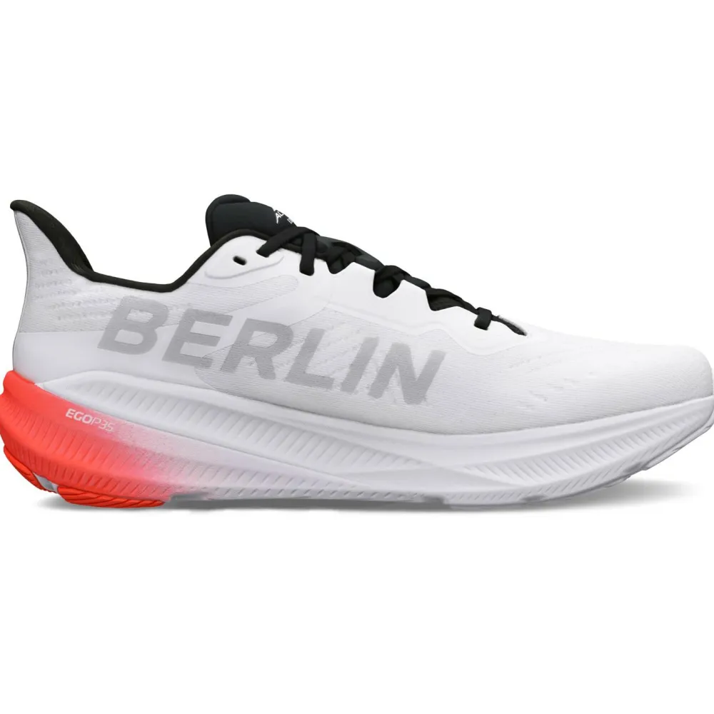 Die Altra Women’s Experience Flow 2 Berlin von Altra begleiten Dich auf Deinen Straßenläufen mit einem spürbar natürlichen Laufgefühl. Dank der Altra EGO-Zwischensohle und der EGO P35-Technologie genießt Du eine ausgewogene Mischung aus weicher Dämpfung und dynamischer Reaktionsfreudigkeit – das schont Deine Gelenke und gibt Dir bei jedem Schritt Energie zurück. Die geringe Sprengung von 4 Millimetern unterstützt ein gesundes Abrollen, während die Rocker Shape-Konstruktion das Abrollen erleichtert. Mit einer Stapelhöhe von etwa 30 Millimetern profitierst Du zusätzlich von angenehmer Dämpfung auf Asphalt.