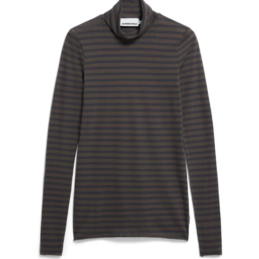 Lässig, bequem und für zahlreiche Gelegenheiten bestens geeignet, das ist das Women’s Grazilianaa Stripes von ARMEDANGELS. Dieses Longsleeve mit lässigem Streifenmuster ergänzt Deine Garderobe vor allem an kühleren Tagen. Durch den nahezu geraden Schnitt ist es dabei sehr angenehm zu tragen und behindert Dich in Deiner Bewegungsfreiheit nicht. Angenehm ist dabei auch der hochgezogene Kragen, der Deinen Hals vor Kälte schützt.