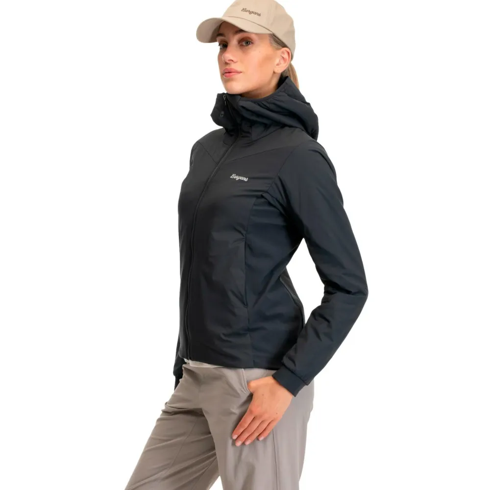 Die Women’s Holo Insulated Hood Jacket von Bergans ist eine echte Alleskönnerin für jedes Outdoor-Abenteuer! Diese hoch technische und vielseitige Kunstfaserjacke leistet sowohl als Midlayer als auch als eigenständige Funktionsbekleidung hervorragende Dienste. Ausgestattet mit der Bergans Arctic Insulation bietet sie viel Wärme bei wenig Gewicht und behält ihre Isolierfähigkeit auch bei feuchten Bedingungen. Das wind- und wasserabweisende Außenmaterial schützt zusammen mit der isolierten Kapuze vor den Elementen und ist dabei hoch atmungsaktiv und strapazierfähig. Strategisch platzierte Stretch-Einsätze an den Seiten optimieren die Atmungsaktivität und Ventilation dort, wo sie am meisten gebraucht wird.