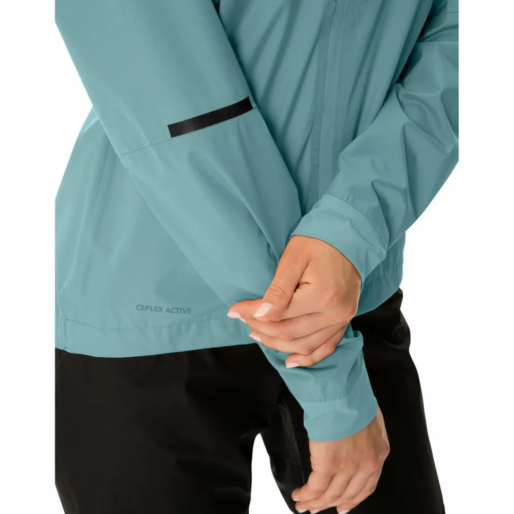 Bei einem Wetterumschwung ist die Fahrradjacke Women’s Kuro Rain Jacket von Vaude praktisch! Dank wasser- und winddichter Membran ist die Jacke ein zuverlässiger Wetterschutz. Zudem punktet das Material mit einer zuverlässigen Atmungsaktivität, damit sich keine Feuchtigkeit anstaut. Dank vorgeformten Ärmeln hast Du eine gute Bewegungsfreiheit. Ein verlängerter Rücken und elastische Bündchen optimieren die Passform. Die Jacke kannst Du platzsparend in der Innentasche verstauen. Ein durchdachtes Konzept!