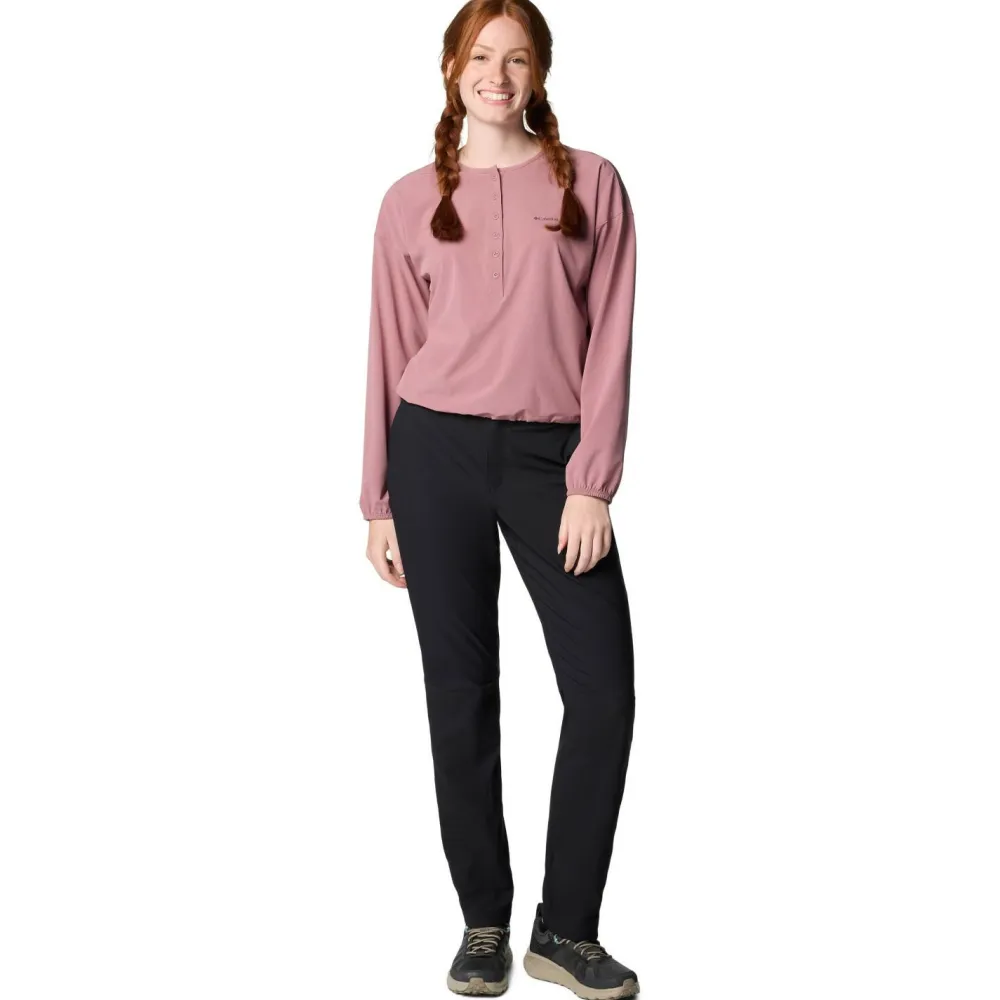 Beim Wandern und auf Reisen begeistert die funktionelle Women’s Leslie Falls Pant II Trekkinghose von Columbia durch tollen Tragekomfort und erstklassige Bewegungsfreiheit. Dafür sorgt eine stretchy Materialmischung mit Nylon und Elasthan. Das funktionelle Gewebe ist angenehm leicht, strapazierfähig und atmungsaktiv. Außerdem trocknet es zügig und ist ausgesprochen pflegeleicht.