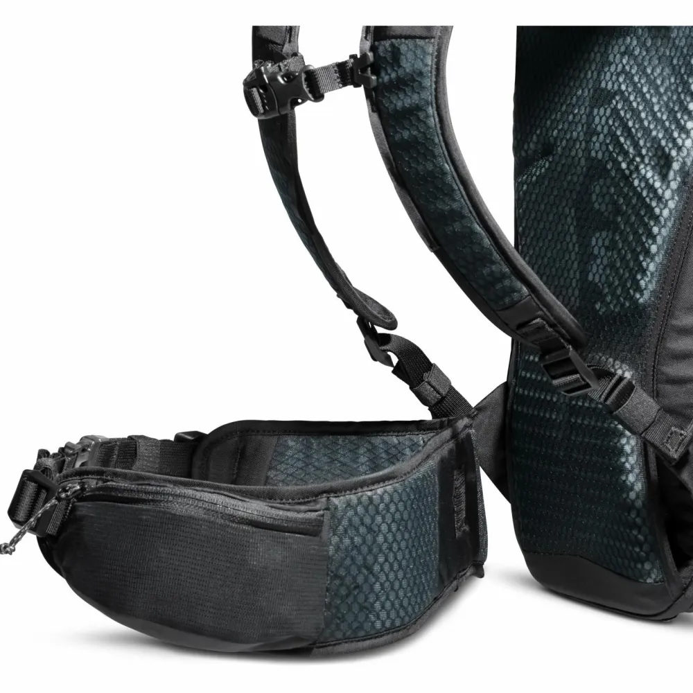 Einen hohen Tragekomfort genießt Du dank gepolsterten Schulterträgern und weichem Hüftgurt. Für eine gute Belüftung am Rücken sorgen Luftkanäle im Schaumstoff. Stauraum für Verpflegung und Equipment hast Du im Hauptfach. Auf die seitlichen Netztaschen kannst Du auch im Gehen zugreifen. Soliden Wetterschutz bietet das wasserabweisende, robuste Außenmaterial. Ideal für tempoorientierte Wanderinnen!