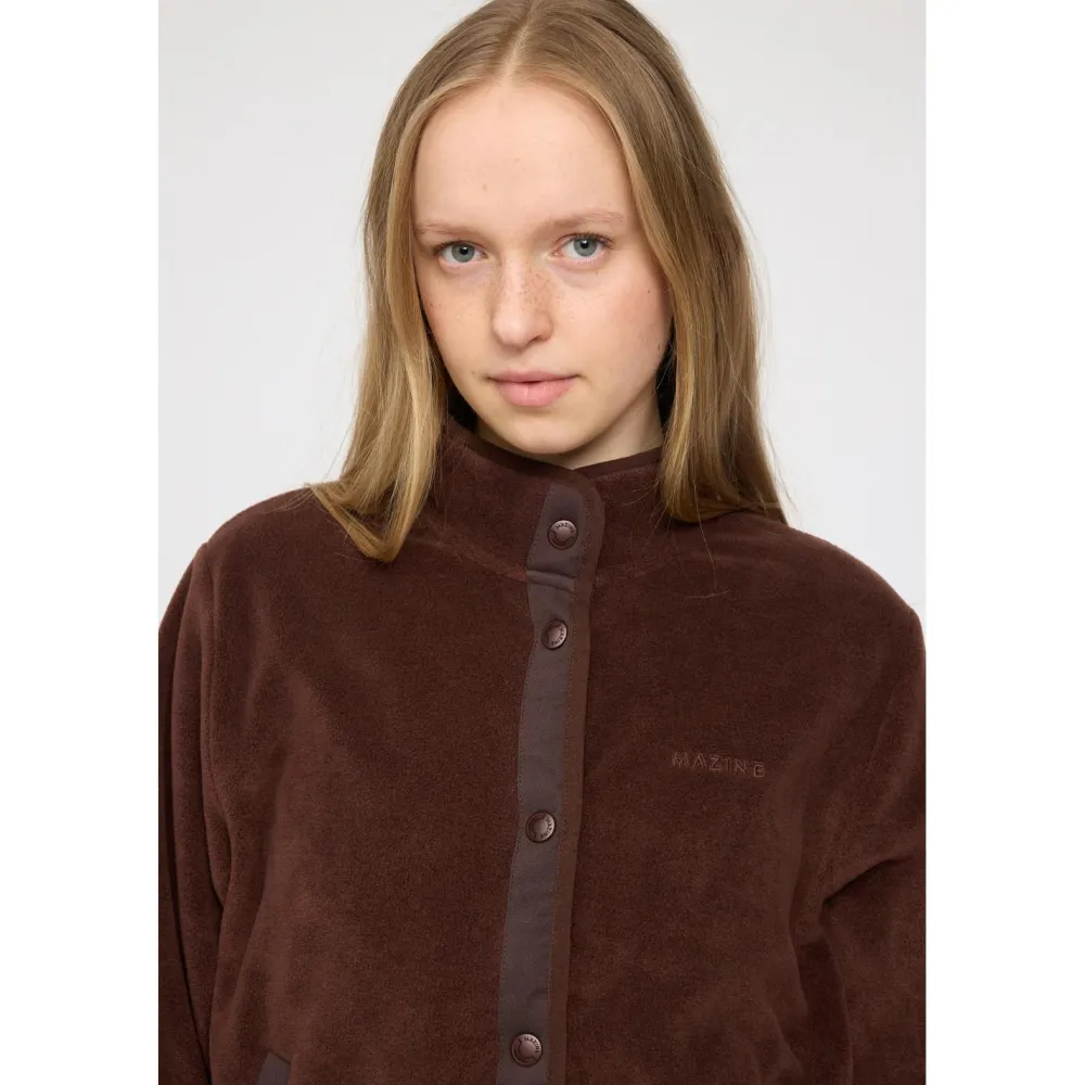 Das Women’s Loose Fit Fleece Jacket von Mazine eignet sich für kalte Tage in Deiner Freizeit. Die Fleecejacke ist atmungsaktiv und schnelltrocknend. Der Stehkragen schmiegt sich angenehm an Deinen Hals an und hält ihn angenehm warm. Die durchgehende Druckknopf-Leiste erleichtert das An- und Ausziehen. Damit kann die Fleecejacke außerdem individuell getragen werden. Die beiden Seitentaschen bieten Platz, um Geld, Handy oder Schlüssel zu verstauen. Der moderne und lässige Look kann mit vielen Outfits kombiniert werden. Trage die Fleecejacke als Außenlayer oder aber auch unter einer Winterjacke.