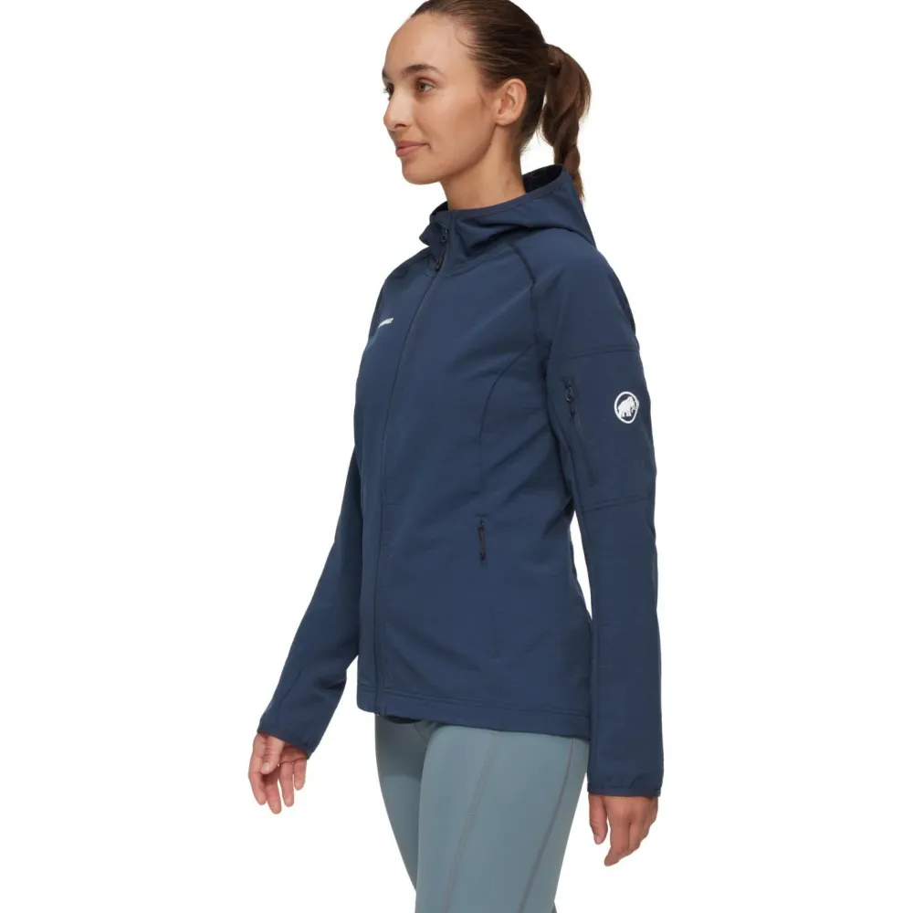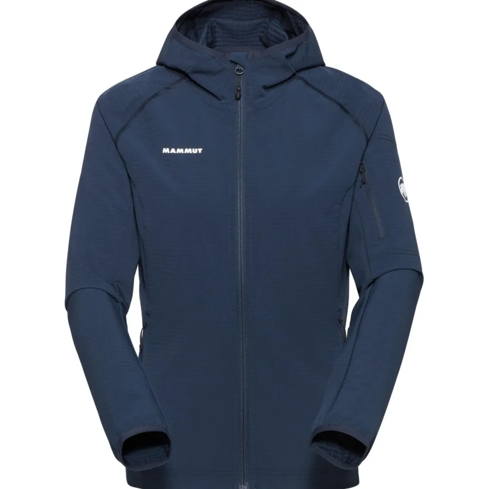 Die Women’s Madris Light Midlayer Hooded Jacket von Mammut besteht aus einer stretchy Materialmischung mit Polyamid, Polyester und Elasthan. Mit windabweisender Oberfläche und atmungsaktiver Waffelstruktur auf der Innenseite sorgt die Fleecejacke für eine ausgewogene Kombination aus Wetterschutz und Wärmeleistung.