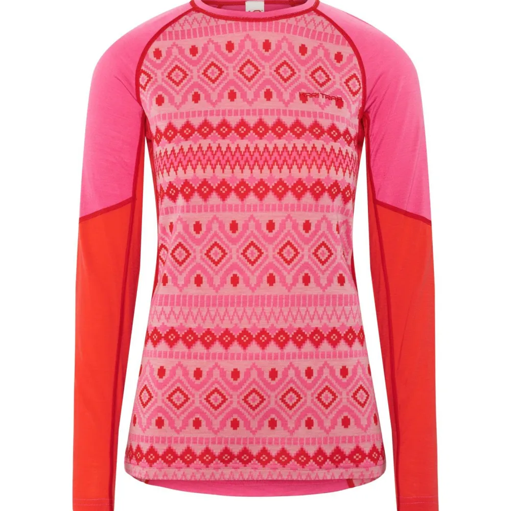 Lässig im schwedischen Ethnomuster und mit Raglanärmeln glänzt das Women’s Malia L/S Longsleeve von Kari Traa auf der Piste und in der Freizeit!