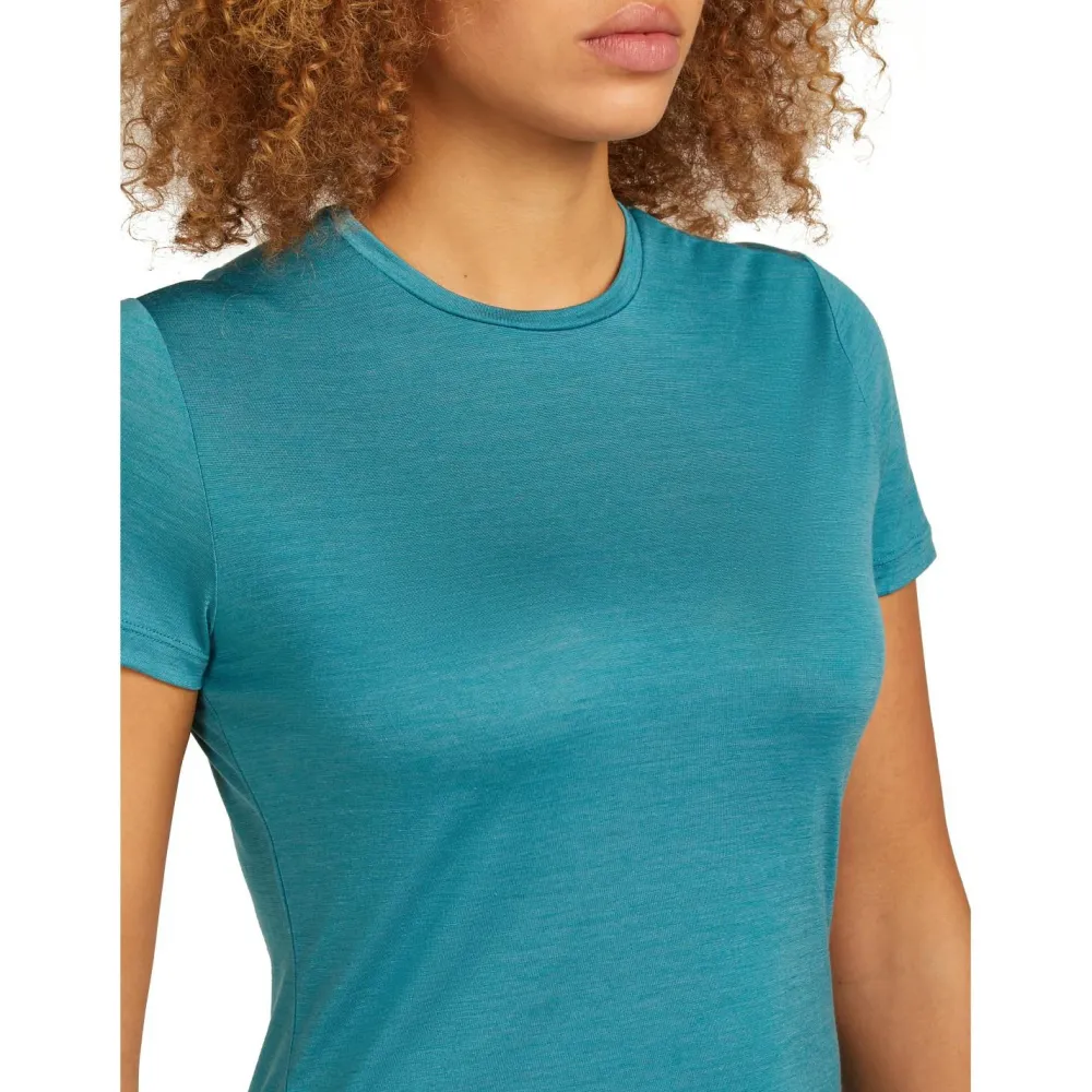 Der Rundhalsausschnitt schmiegt sich angenehm an den Hals an, ohne einzuengen. Dank der versetzen Schulternähte wurde unangenehme Reibung an den Schultern direkt vorgebeugt. Durch die Materialzusammensetzung mit Merinowolle ist das T-Shirt atmungsaktiv, geruchshemmend und temperaturregulierend. Ein T-Shirt, das die perfekte Wahl für Ausflüge in die Natur ist – das Women’s Merino 125 Cool-Lite Sphere III S/S Tee von Icebreaker.
