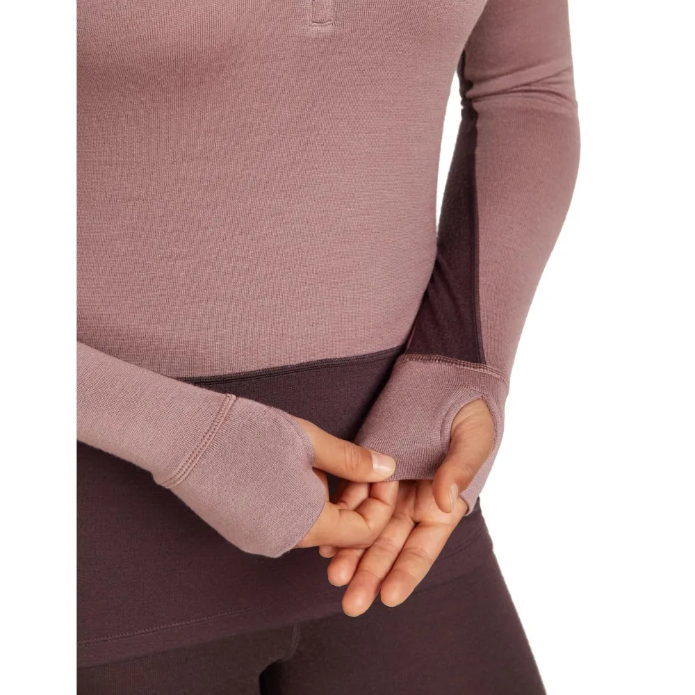 Der Icebreaker Women’s Merino 260 Zoneknit L/S Half Zip vereint stilvolles Design mit durchdachter Funktionalität für Deine Outdoor-Erlebnisse. Der halblange Front-RV ermöglicht es Dir, die Temperatur individuell zu regulieren, während der Stehkragen vor Wind schützt. Die Daumenschlaufen halten die Ärmel sicher an Ort und Stelle – perfekt für dynamische Bewegungen in der Natur. Und dank der Flachnähte kannst Du Dich auf langen Touren über einen reibungsfreien Tragekomfort freuen.