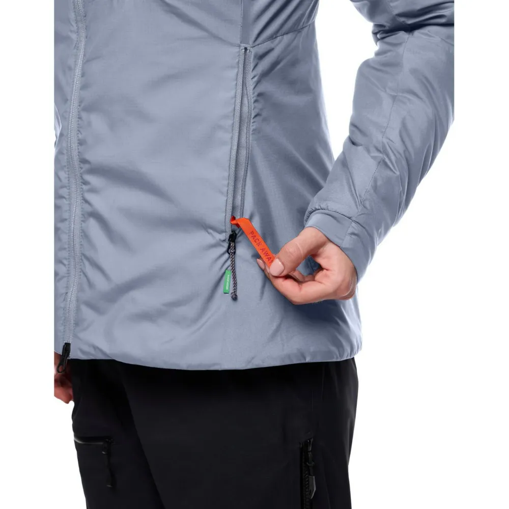 Die Ausstattung bietet ebenfalls alles auf, was es für den alpinen Einsatz braucht. Die angeschnittene Kapuze gehört ebenso dazu, wie der gurtkompatible Zwei-Wege Front Reißverschluss und der Kordelzug im Saum, der sich einhändig bedienen lässt. Auch die vorgeformten Ärmel für mehr Bewegungsfreude und die geräumigen Taschen haben ihren Platz. All diese Qualitäten und Details bietet die Women’s Monviso Bergsportjacke bei einem hervorragenden Verhältnis von Wärmeleistung zu Gewicht!