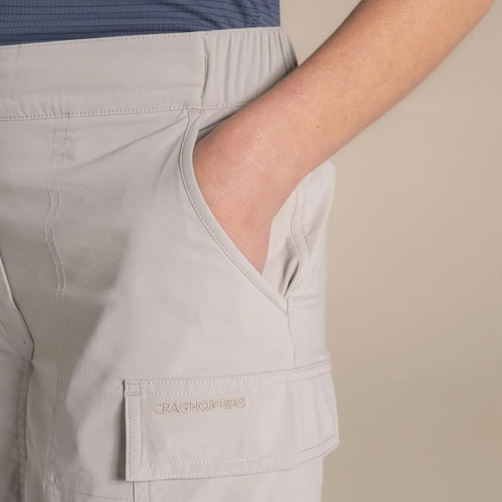 Für Wanderungen, Trekkingtouren und natürlich Reisen in südliche Gefilde ist der Women’s Nosilife Pro Cargo Skort von Craghoppers bestens geeignet. Dieser Skort ist dabei sehr angenehm zu tragen und lässt Dir eine gute Bewegungsfreiheit. Das Material ist ebenfalls angenehm zu tragen und überzeugt durch seine gute Atmungsaktivität. Darüber hinaus neigt es nicht zu vorzeitiger Geruchsbildung. Praktisch, bei Reisen mit begrenztem Gepäck. Der Skort wurde mit fünf Taschen ausgestattet und bietet Dir somit Platz für allerlei Kleinteile, die schnell zur Hand sein sollen.